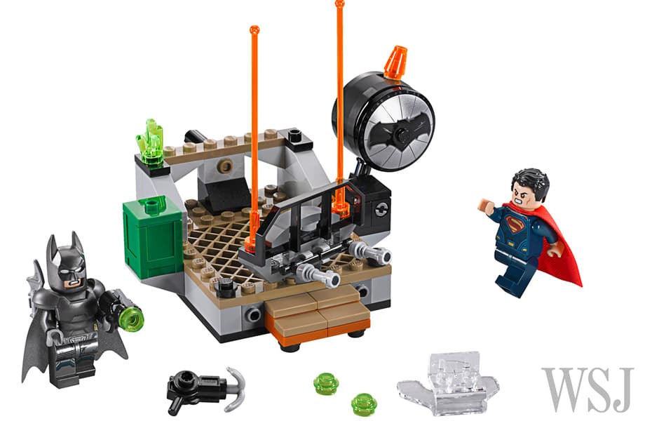 The Clash of the Heroes set contains 90 pieces, including minifigures of Superman and Batman, a buildable Kryptonite bazooka with launch stick, and a rotating, exploding Bat-Signal. It will retail for $12.99.