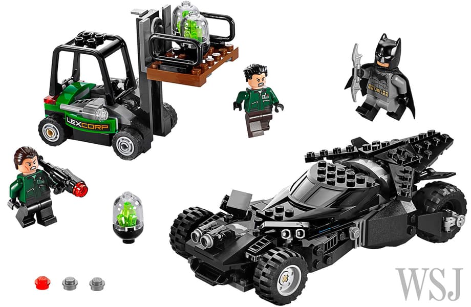The Kryptonite Interception set contains 300 pieces, including minifigures of Batman and two LexCorp “henchmen,” a forklift for Kryptonite, and a Batmobile with two stud shooters and opening doors. It will retail for $29.99.