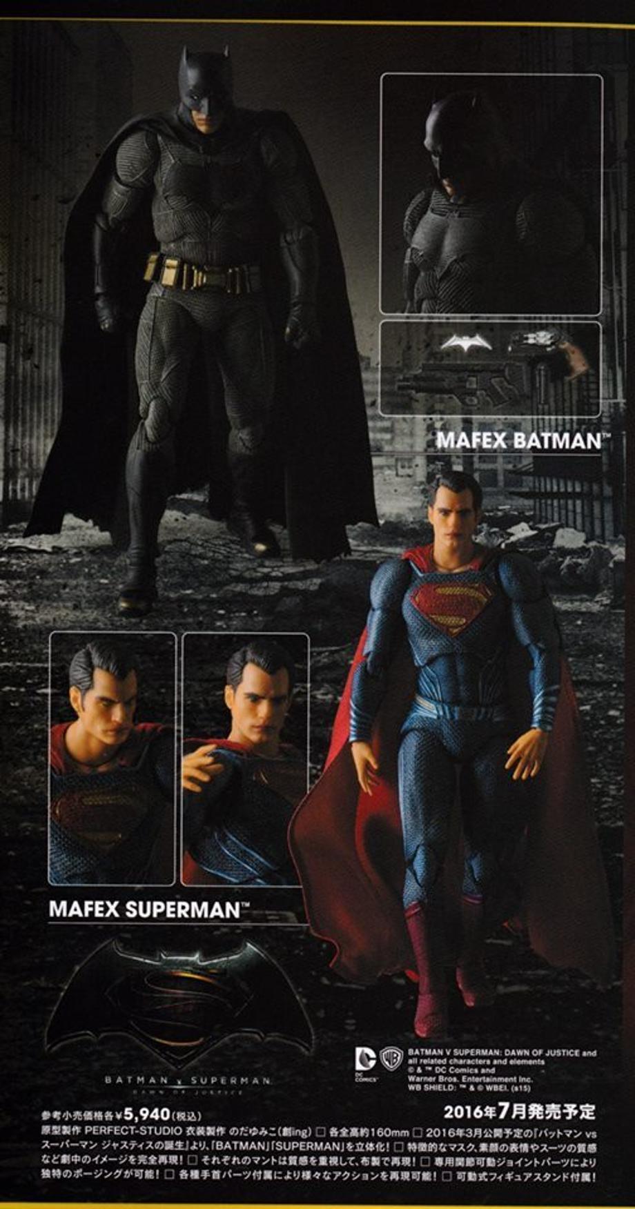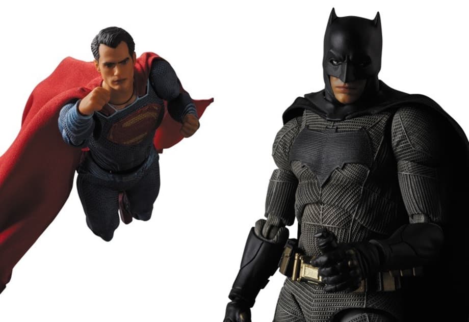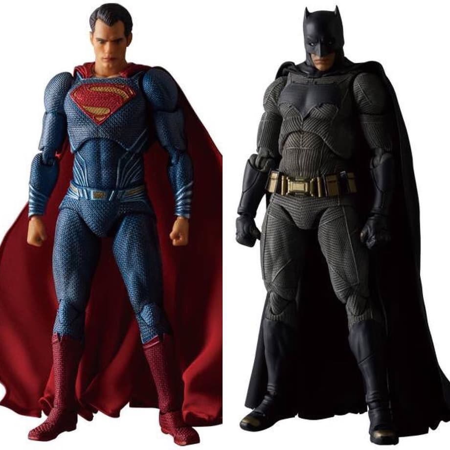 New high quality action figures have been revealed for Batman v Superman: Dawn of Justice from Miracle Action Figure EX and they look fantastic! In the picture, Batman is posing in the same way as his costume debut when revealed by Director Zack Snyder. Superman appears to come with a variety of heads for different facial expressions while Batman comes with his own array of miniature weaponry, including his batarang, grappling gun, and his grenade launcher. What do you think of these new MAFEX Superman and Batman action figures?