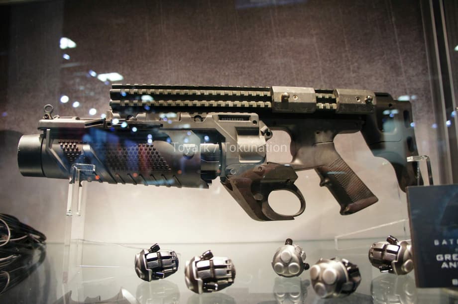 More images from San Diego Comic-Con have surfaced with gadgets from Batman's utility belt in Dawn of Justice, plus a closer look at the armored Batsuit and DC Collectible statues. Check it out!