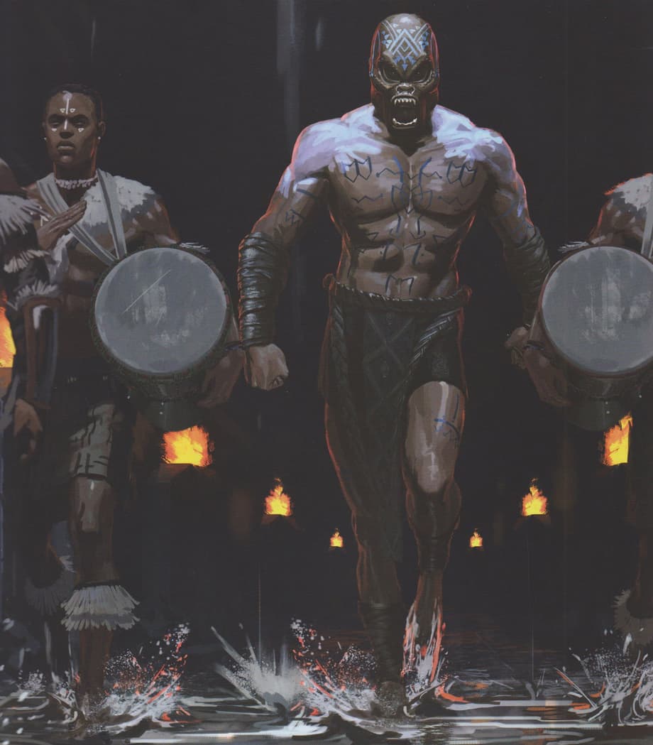 T'Challa's battle with M'Baku at Warrior Falls was one of the best sequences in Black Panther and this amazing concept art offers some alternate takes on their tribal masks and their impressive costumes.