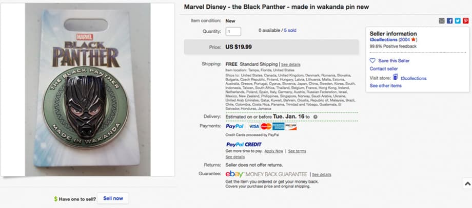 Black Panther pin sold at the Pin Traders store in Disney World's Spring Marketplace.