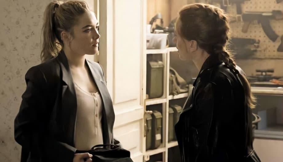 Check out two new stills featuring Natasha (Scarlett Johansson) and Yelena (Florence Pugh) below.
