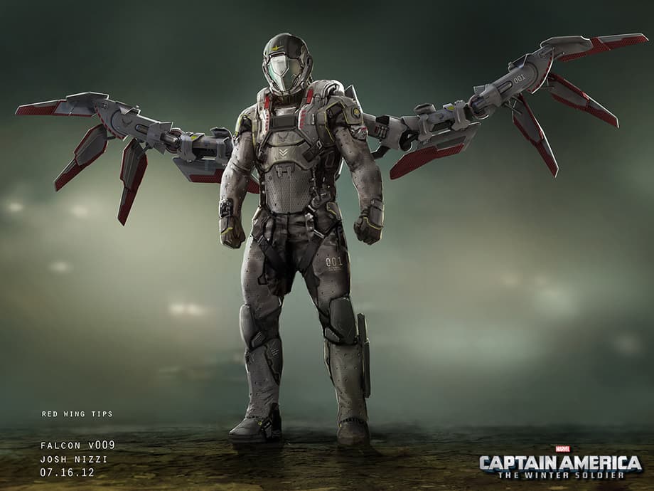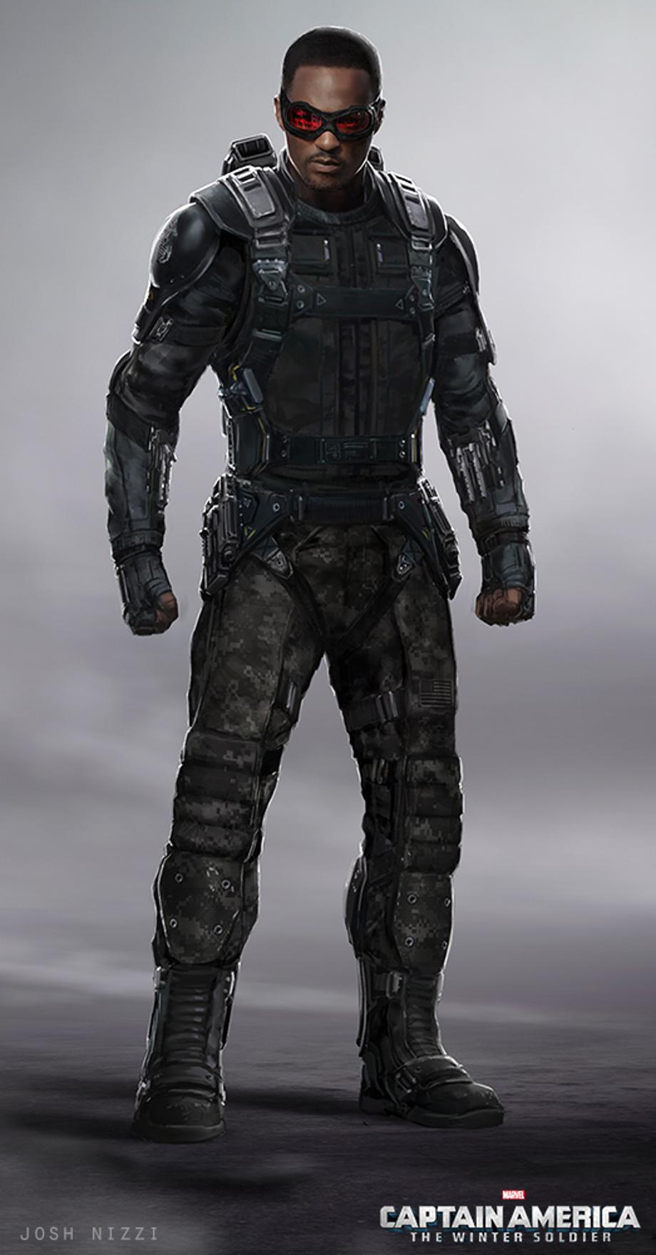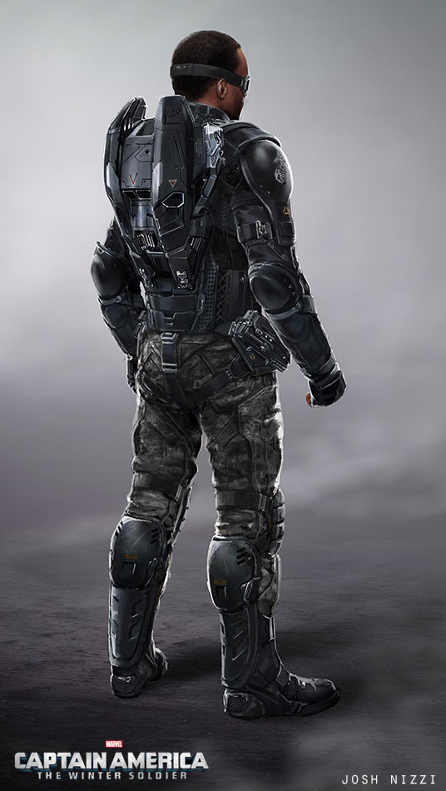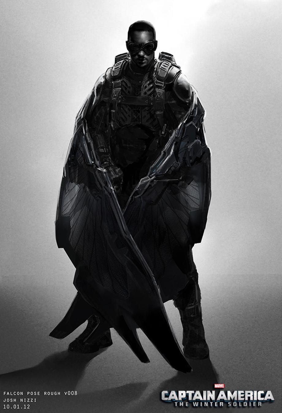 Conceptual illustrator, Josh Nizzi ("Iron Man 3"), has update his website with some fantastic designs for Marvel's Captain America: The Winter Soldier. Hit the jump to see concept art of Falcon/Sam Wilson and the Winter Soldier/Bucky Barnes.