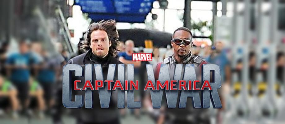 Revealing our first look at Sebastian Stan suited up as The Winter Soldier equipped with his pre-CG bionic arm, the latest photo from the Captain America: Civil War set in Germany sees the brainwashed soldier in a footrace with Anthony Mackie's Falcon. Check it out!