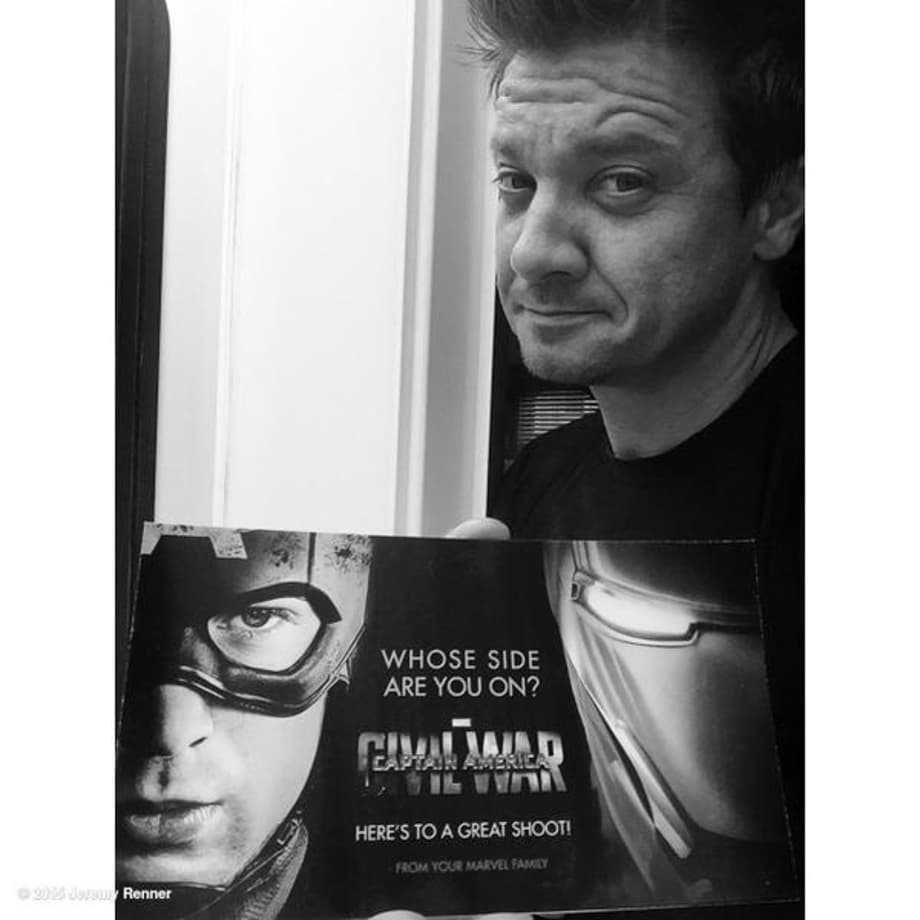 Whose Side Are You On? Jeremy Renner Shares CAPTAIN AMERICA: CIVIL WAR Promo Image