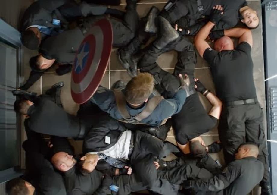 We see Fury in critical condition in a S.H.I.E.L.D. operating room with Rogers, Romanoff, and Maria Hill (Fury’s right hand agent) watching helplessly as Fury flatlines and seemingly dies of his wounds. Rogers is confronted by Pierce at the S.H.I.E.L.D. organization and questions why Fury was in his apartment at the time of the shooting. Rogers runs into his neighbor Kate at the organization who is revealed to be an agent of S.H.I.E.L.D., Agent 13.