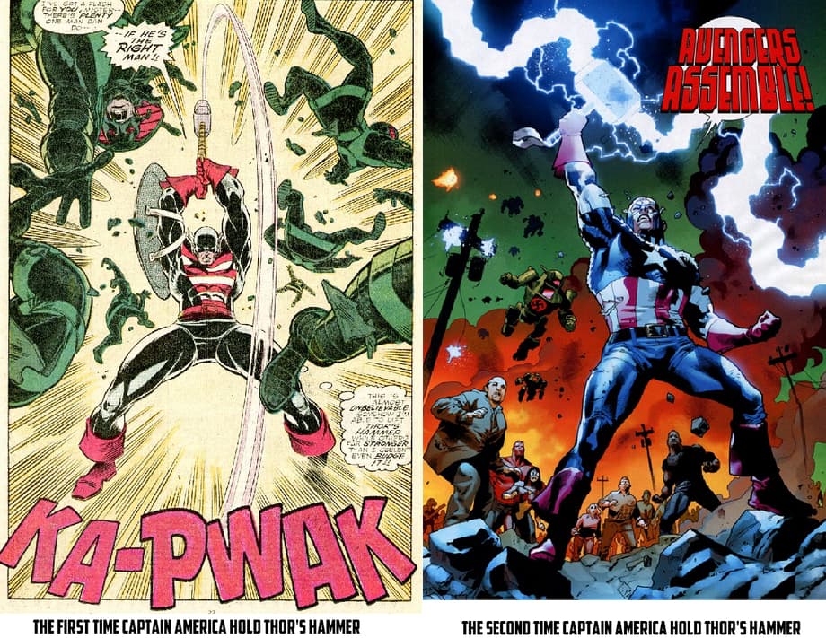This is where Thor fans step in! As we all know, Thor's hammer Mjolnir has been blessed, and only those who are pure and worthy can pick it up and use Thor's power. Those found worthy have been few and far between, but Captain America has actually picked up the hammer twice! The first time was back in the 70s when Cap was fighting with his team the Avengers against Seth, the Egyptian god of death, while he most recently lifted in the Fear Itself storyline. Thor is not the only mighty Avenger!