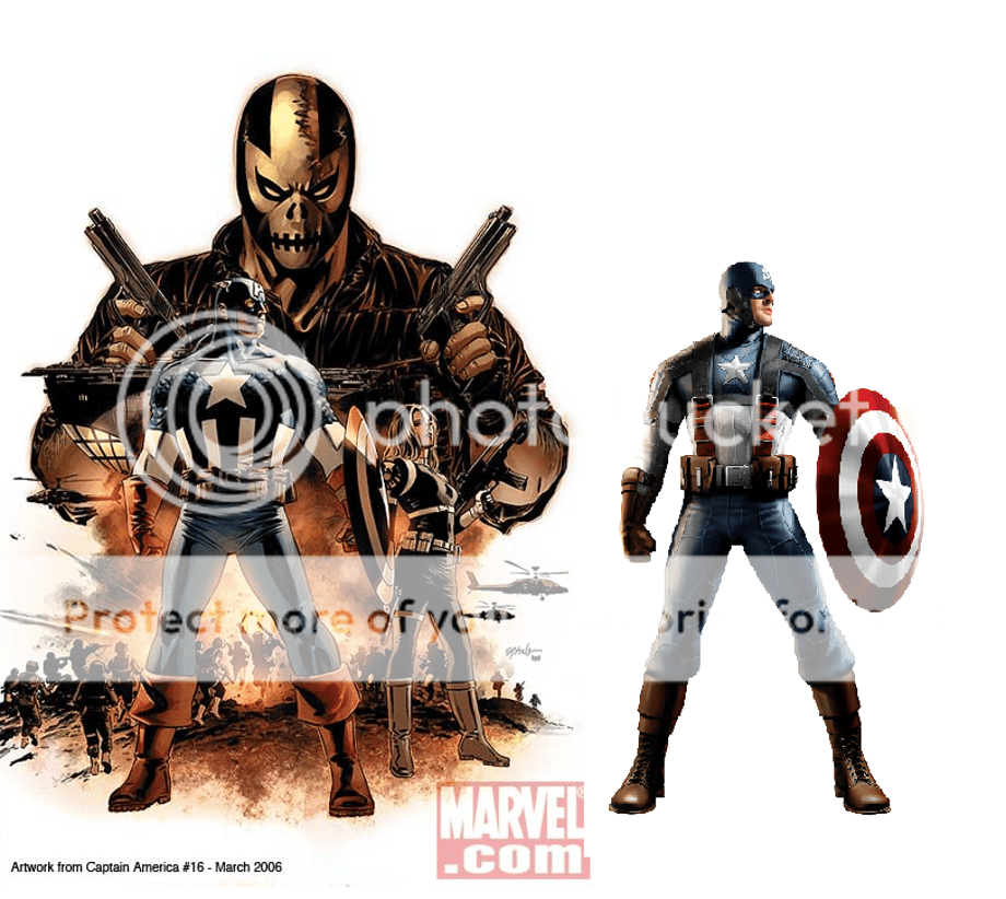 On another note, I believe I may have discovered the source of inspiration for the artist who made the costume concept art pictures. I noticed that two of the pictures bear a striking resemblance to the covers of Ed Brubaker Captain America comics.