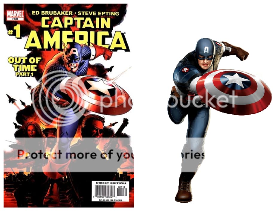The similarity is just too strong to be a coincidence. Maybe I'm just reading too much into this, but these picture and some earlier quotes suggest that the look of this movie will be heavilly influenced by the art featured in Brubaker's Captain America.