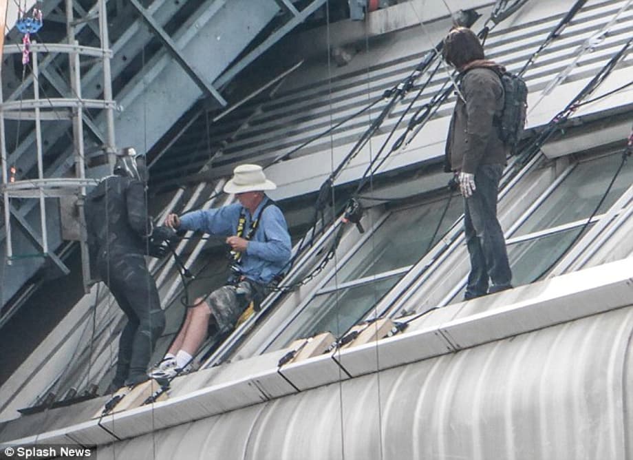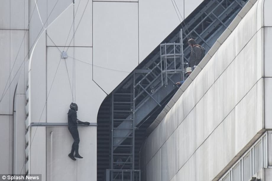 UPDATE: More photos have now arrived thanks to both the Daily Mail and ComingSoon.net. And they offer a much better look at the Black Panther donned by Chadwick Boseman's stunt double as he scales a building along with Sebastian Stan's Winter Soldier double. What do you think?