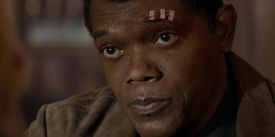 We know Nick Fury as the Director of S.H.I.E.L.D. but when we meet this younger version of the character, he's going to be a "desk jockey" working at the spy organisation. We're obviously going to learn how he lost his eye and it's ironic that he has a cut above it here as he has a chat with Carol.