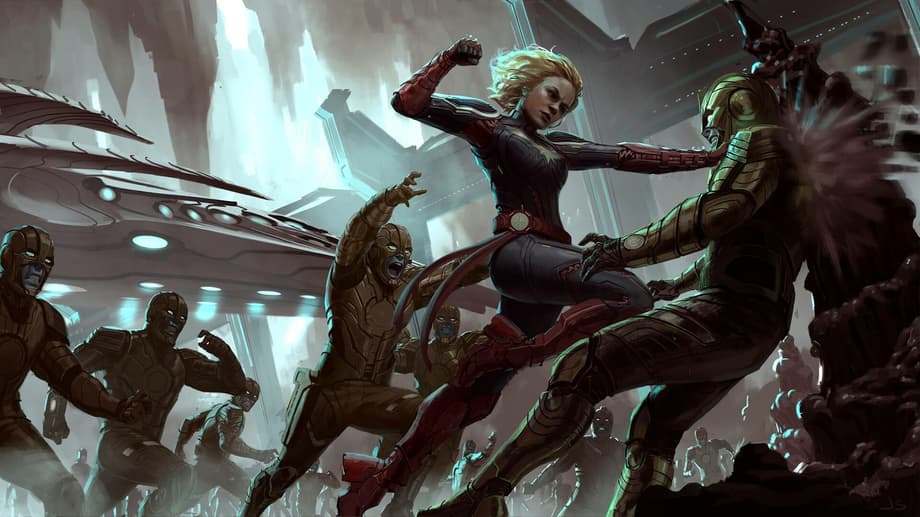 Released during Comic-Con a few years back, this piece puts the Kree soldiers in their classic comic book gear and gives Carol her sash. Clearly, this was created very early in the film's development.