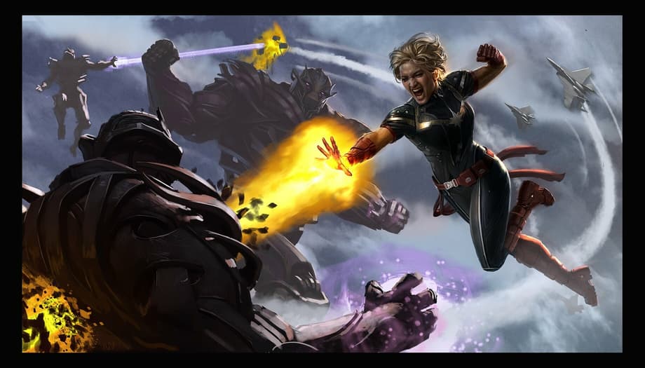 As well as a fist fight between Carol and a super-charged Nick Fury, we also get to see the hero battling some massive Kree Sentries. Meanwhile, some of the other pieces here provide very different takes on key moments and locations, not to mention different designs for the Skrulls and the costume worn by the titular hero in her first solo adventure.