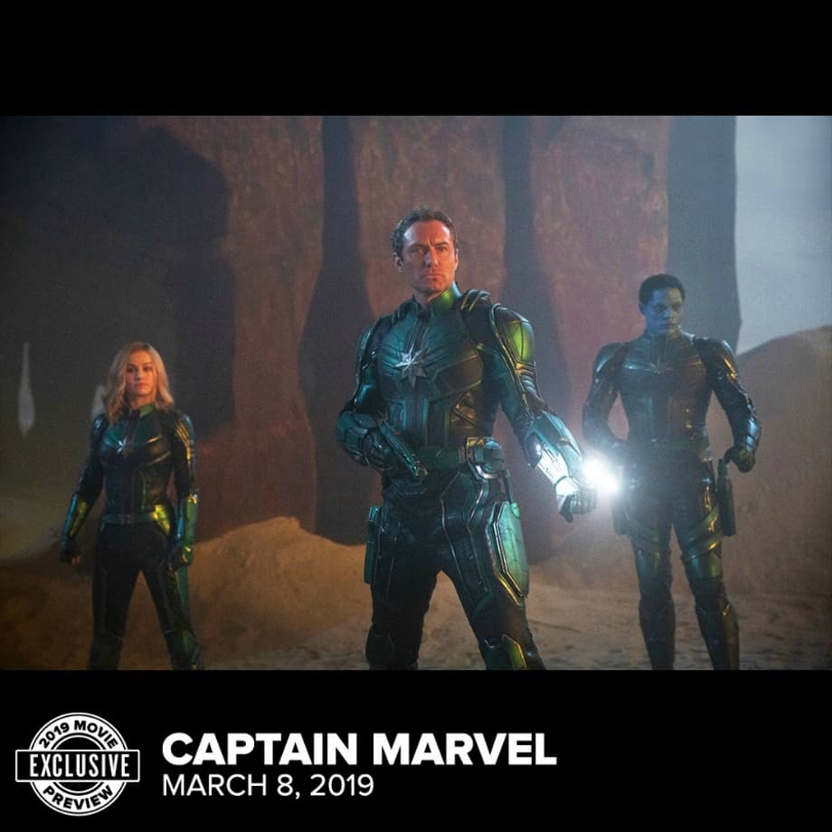 We got confirmation earlier this week that Jude Law will actually be playing Mar-Vell in Captain Marvel, and here he is pictured with fellow Starforce members Att-Lass (Algenis Perez Soto) and Vers (Brie Larson).