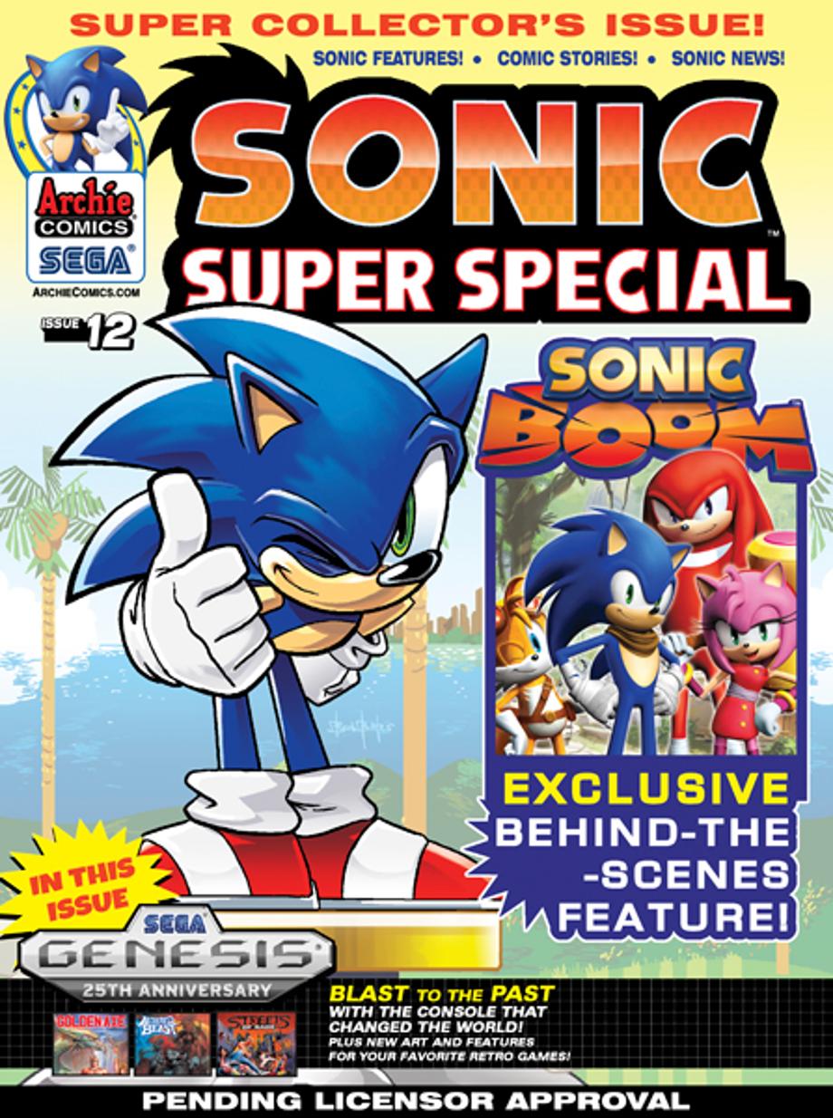 Celebrate 25 years of the SEGA GENESIS with this extra-special anniversary edition of SONIC SUPER SPECIAL MAGAZINE! Take a look back at the SEGA system that started a revolution with this anniversary issue featuring the origins of such hit games as Golden Axe, Altered Beast, Streets of Rage and more—alongside awesome new pin-up art from the Archie team! Also featured is a special look at the all-new SONIC BOOM games and TV show, with exclusive info you won’t find anywhere else! The SONIC SUPER SPECIAL MAGAZINE gives you the world of Sonic the Hedgehog comics as you've never seen it before, with tons of comic stories, special features and exclusive articles on the latest and greatest in the world of everyone's favorite blue hedgehog-hero! Plus an interview with Sonic inker supreme Terry Austin and an all-new foil-enhanced cover from the incomparable BEN BATES! This issue is jam-packed with awesomeness!