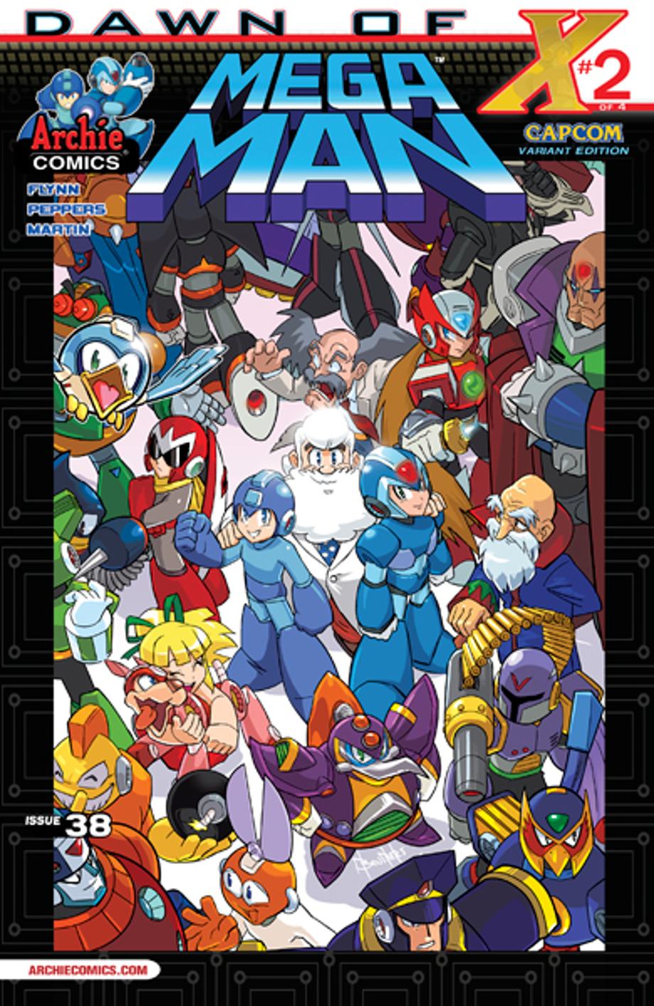 THE EPIC MEGA MAN/MEGA MAN X CROSSOVER EVENT CONTINUES in DAWN OF X pt2! We travel one hundred years into Mega Man’s future, where an ancient Wily weapon threatens all defenseless humans! It’s up to X and Zero to combat the lumbering metal monstrosity! Meanwhile, Emerald Spears terrorist-on-the-run Xander Payne tumbles through time—and sees something that will change him forever! Don't miss the event that everyone will be talking about, featuring brand new cover art from PATRICK "SPAZ" SPAZIANTE and an extra special character-packed variant cover from BEN BATES!