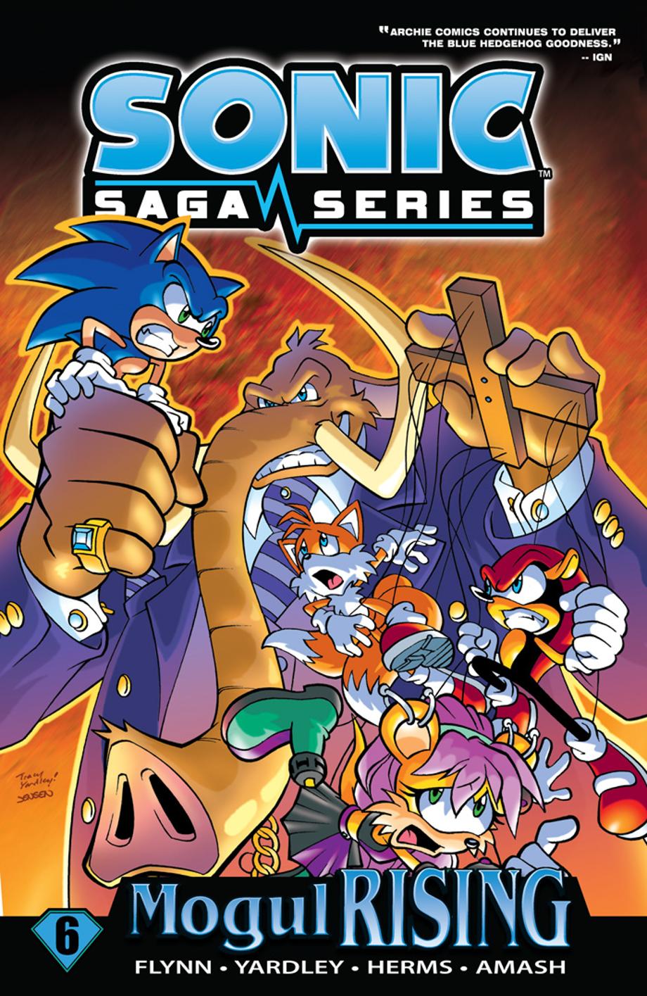 It's SONIC VERSUS EVERYBODY! Blast into the action at Sonic speed with the continuation of the all-new Sonic Saga graphic novel series! In this volume, Sonic battles the ancient, evil Mammoth Mogul—who has lost his Chaos Emerald and been imprisoned, but backing him into such a corner only made him more dangerous! Mogul uses his remaining powers to summon a new Fearsome Foursome—and Sonic is forced to be one of them! Every mercenary and cut-throat is hired to take Sonic's shoes—feet being optional! It's Sonic versus everyone else while the malicious mammoth laughs from the shadows! How can Sonic overcome all the odds? Find out inside! SONIC SAGA VOL. 6 collects selected stories from Sonic the Hedgehog#185-189.