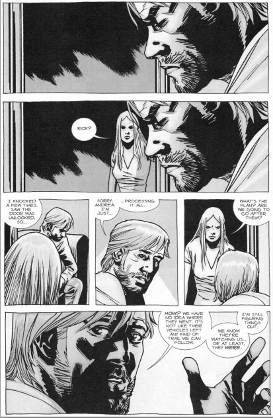 Some notable things here are that Carl notices Andrea and Rick hugging and didn't even bother to talk to them and they didn't notice him which may hint that either Carl is jealous or he wants them together because he seems like he needs a new mother. Glenn also wants to leave Rick's group. What do you think?