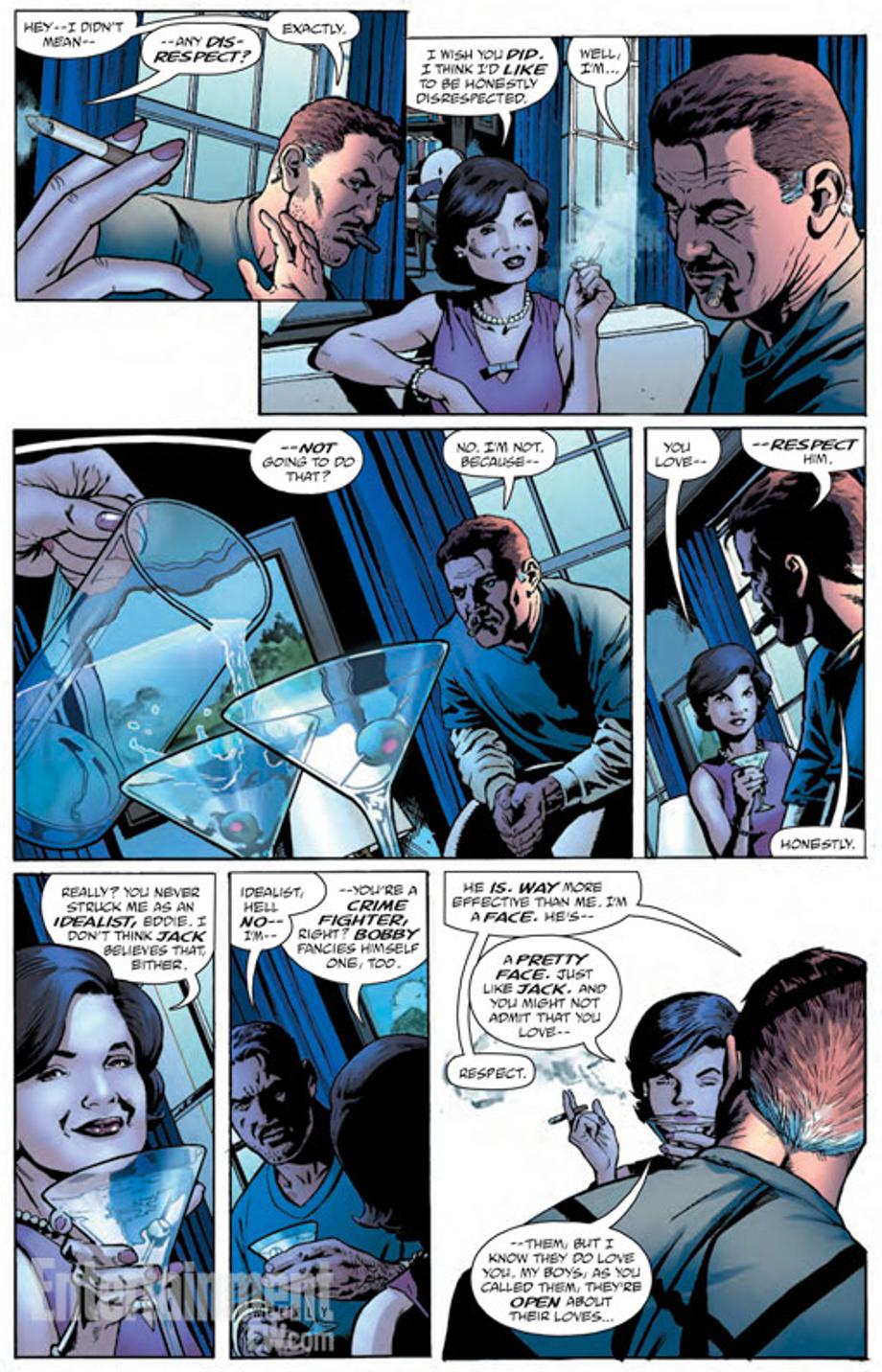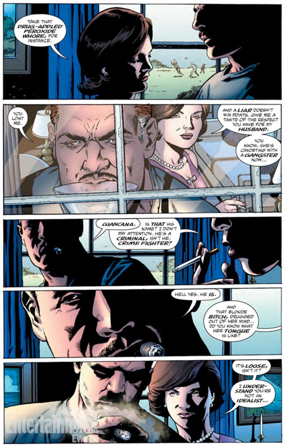 Before Watchmen has been the epitome of controversy as a DC Comic Book ever since the mini-series announcement. In the opening pages of The Comedian's own series, the main character is revealed to be very tight with the Kennedy family and an iconic First Lady has ordered him to kill a famous movie star that is linked with her husband. Check out the preview.