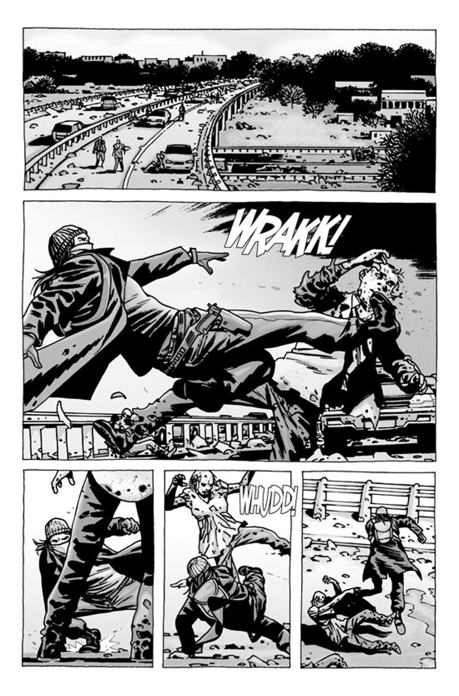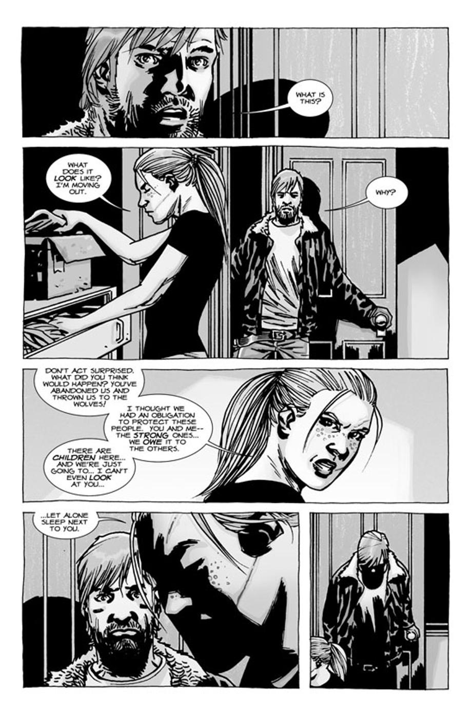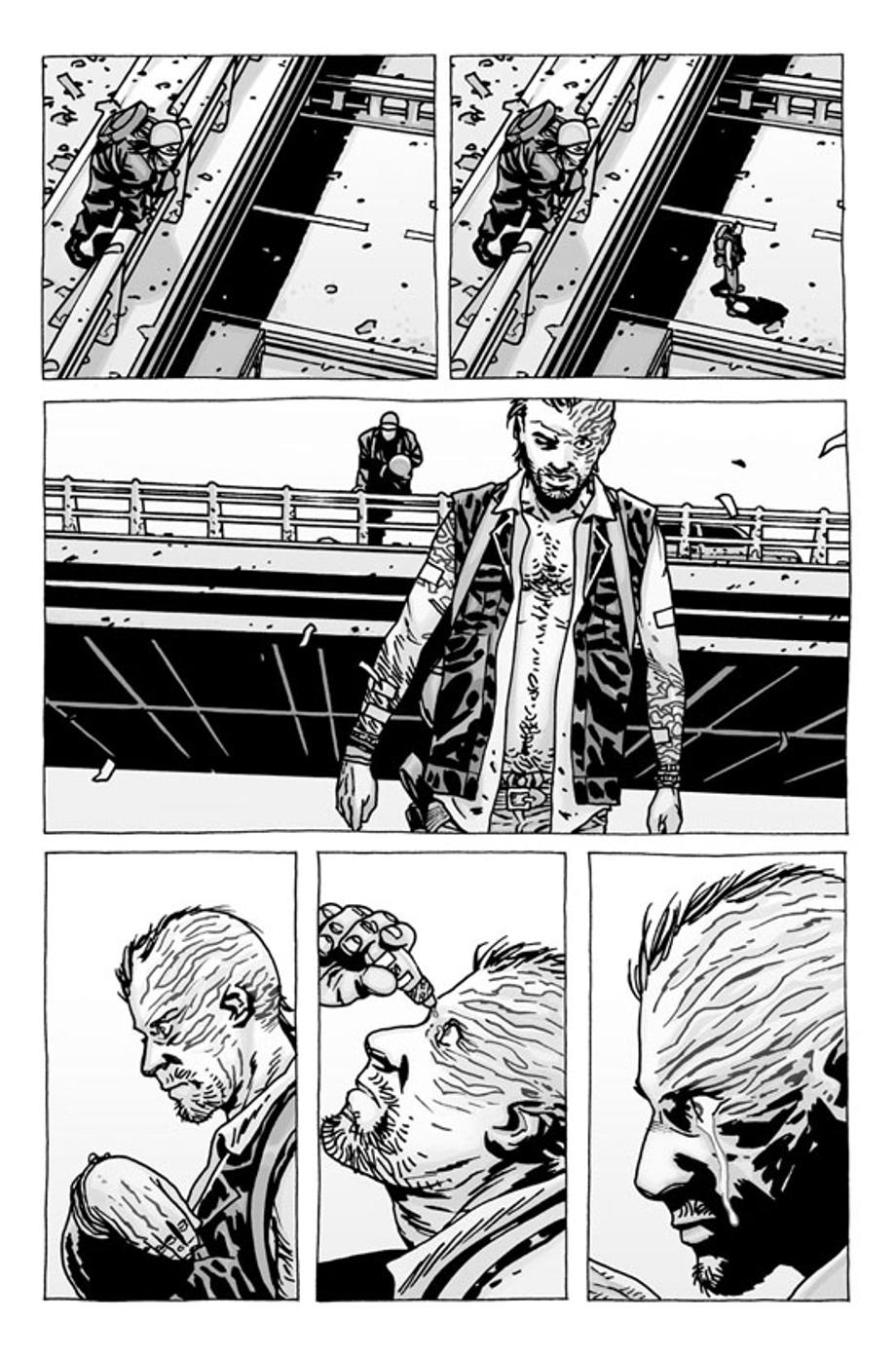 With the group still reeling after the shocking events of issue #100, Rick's decision to work with Glenn's murderer and free the disfigured prisoner does not sit well with his friends. But of course, there is a plan! Here are the first four pages of issue #103..