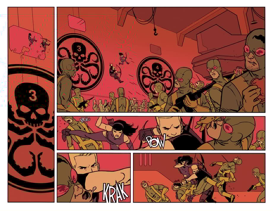 “To me, Kate is an equal to Clint in terms of who the ‘star’ of the book is,” says writer Jeff Lemire in an interview with Marvel.com. “It’s equal billing. It will be as much Kate’s story as it is Clint’s. The threat they’ll be facing is very much something new. And it’s not strictly a big bombastic super-villain-y kind of thing. It’s something that hits them both on a much more personal level.”