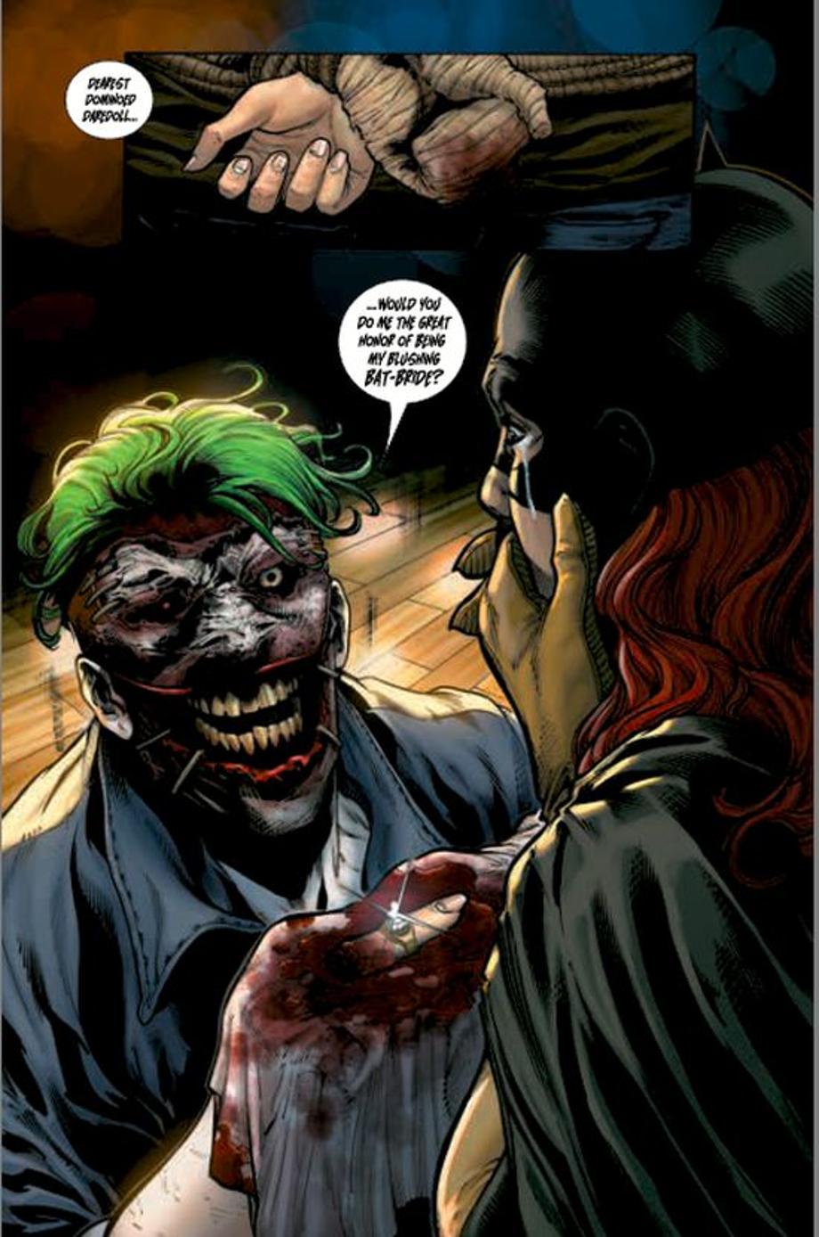 Let’s start with the basics of Batgirl: Death Of The Family. It starts off with a story about Barbara recovering from previous adventures and stopping arsonists and saving people from burning buildings; these arsonists however are only just homeless people. Eventually, Catwoman breaks a talon out of prison to make a deal with some old gangster who’s connected to the Court Of Owls (UGH, can we stop using them already?). This section contains some beautiful artwork, it’s photorealistic and it’s just a wonder to look at, but it only lasts a few pages and it’s quite disturbing when Batgirl enters the fray to break up the Talon fight; because the artwork changes to more of an average water-color paint style, almost as if the collection forgot to insert another issue break somewhere. Not to mention that this new artwork is subpar and somewhat fails at its goals. Overall, the story involving Batgirl, Catwoman and this Talon fella didn’t last long and was somewhat of a chore to get through (mainly because I haven’t read the issues previously) but it wasn’t long until the stakes were raised. The next issue, Barbara gets a phone call, it’s from a mysterious voice who we assume is The Joker claiming that her mother has been captured and is being held hostage. The voice tells Barbara everything and demands she make a sandwich (what?) or her mother will be killed. Eventually, Barbara goes after The Joker; but I don’t think it’s quite explained how she finds where he is.