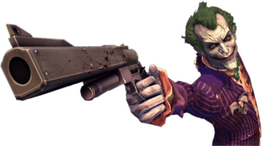 The Joker and Harley take their car and drive around Gotham, shooting and driving as they please, then Batman follows them with the Batmobile, crashing places, the Joker mobile is hit by a Batman rocket, which makes it crash. Then, the Joker throws acid into Bat's batmobile, which ruins it's tires, and system. Then, the car crashes. The Joker takes his gun, and keeps SHOOTING the Batmobile, to get Batman.