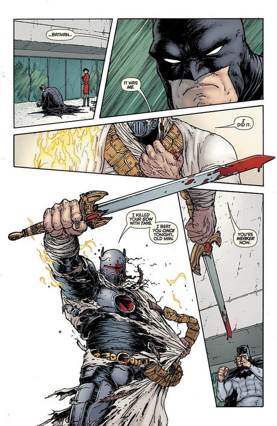 Check out 2 covers and a 3-page lettered preview of Batman Incorporated #9, which gives us a look at the immediate aftermath of the tragic death of the son of The Dark Knight, and a preview of Batman's confrontation with his murderer..