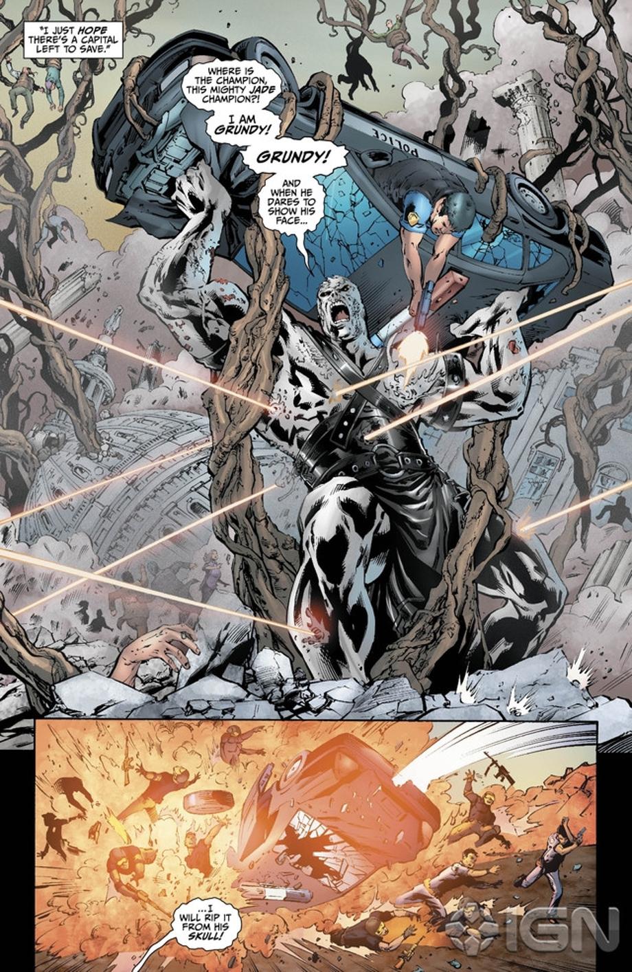 While James Robinson and Nicola Scott build towards the formation of the JSA in the pages of Earth-2, check out this latest preview which features Grundy causing destruction on a massive scale! Hit the jump to check it out.