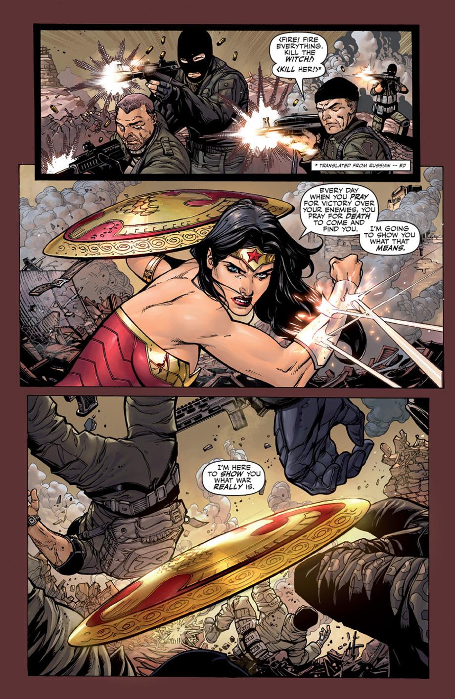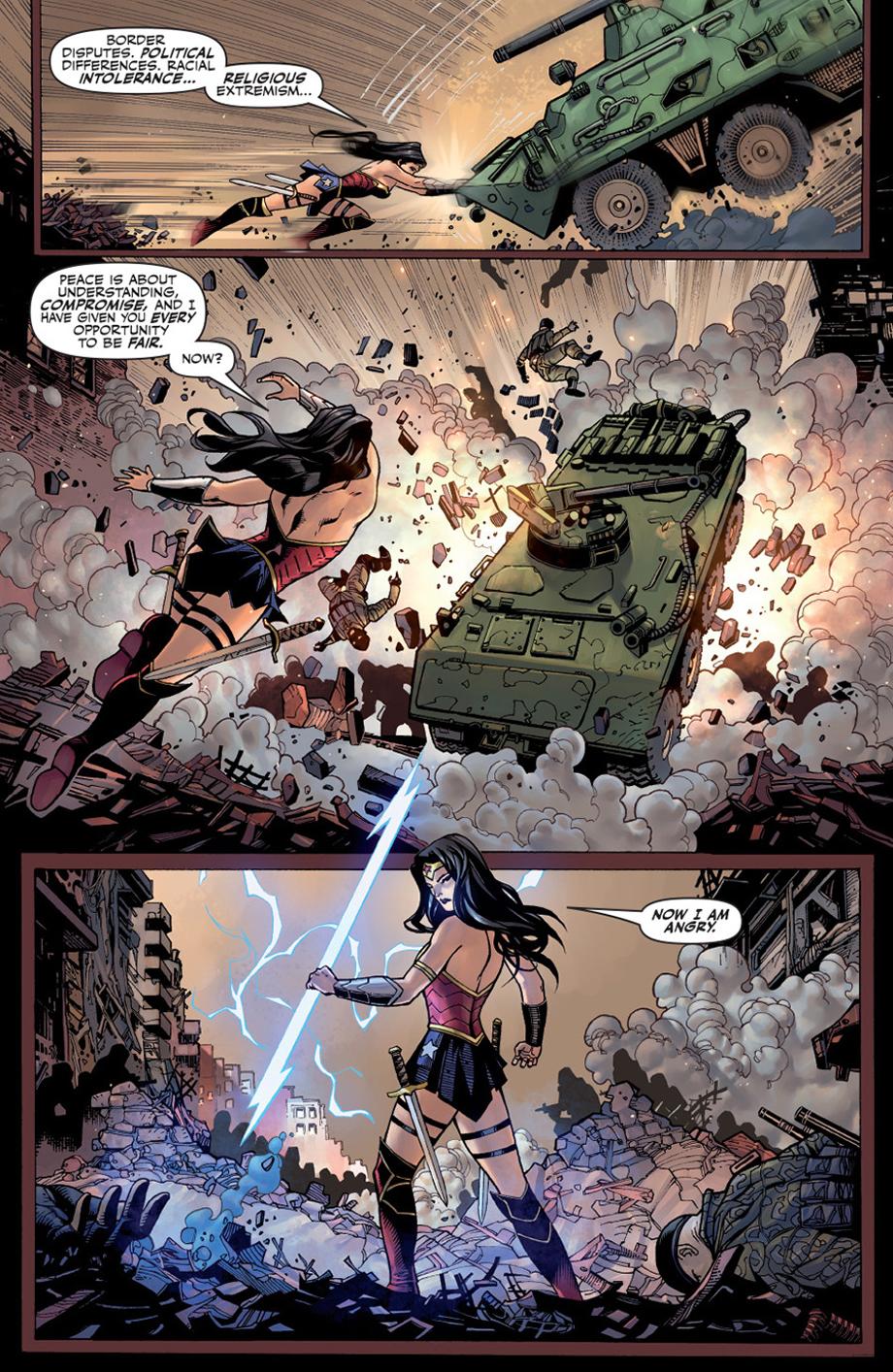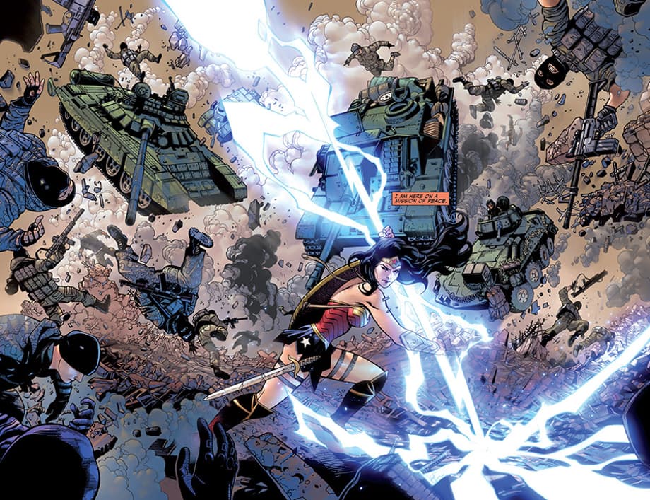 In a previous interview with DC All-Access, Hitch stated that he plans to have the JL face completely original villains as a means to keep his story fresh and exciting. Check out a four-page preview below which features a very angry Diana Prince.