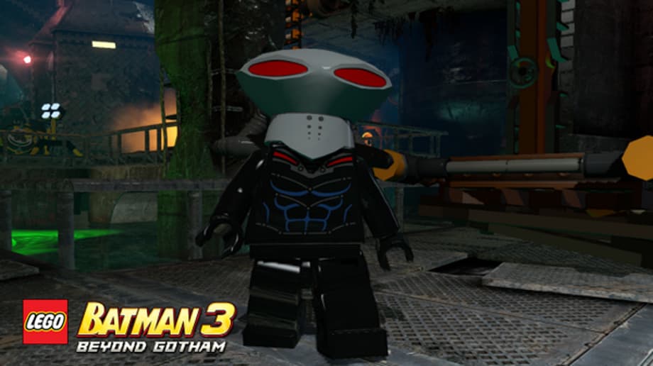 Minifigures: Black Manta, Aquaman, Robin in red scuba suit, and Batman