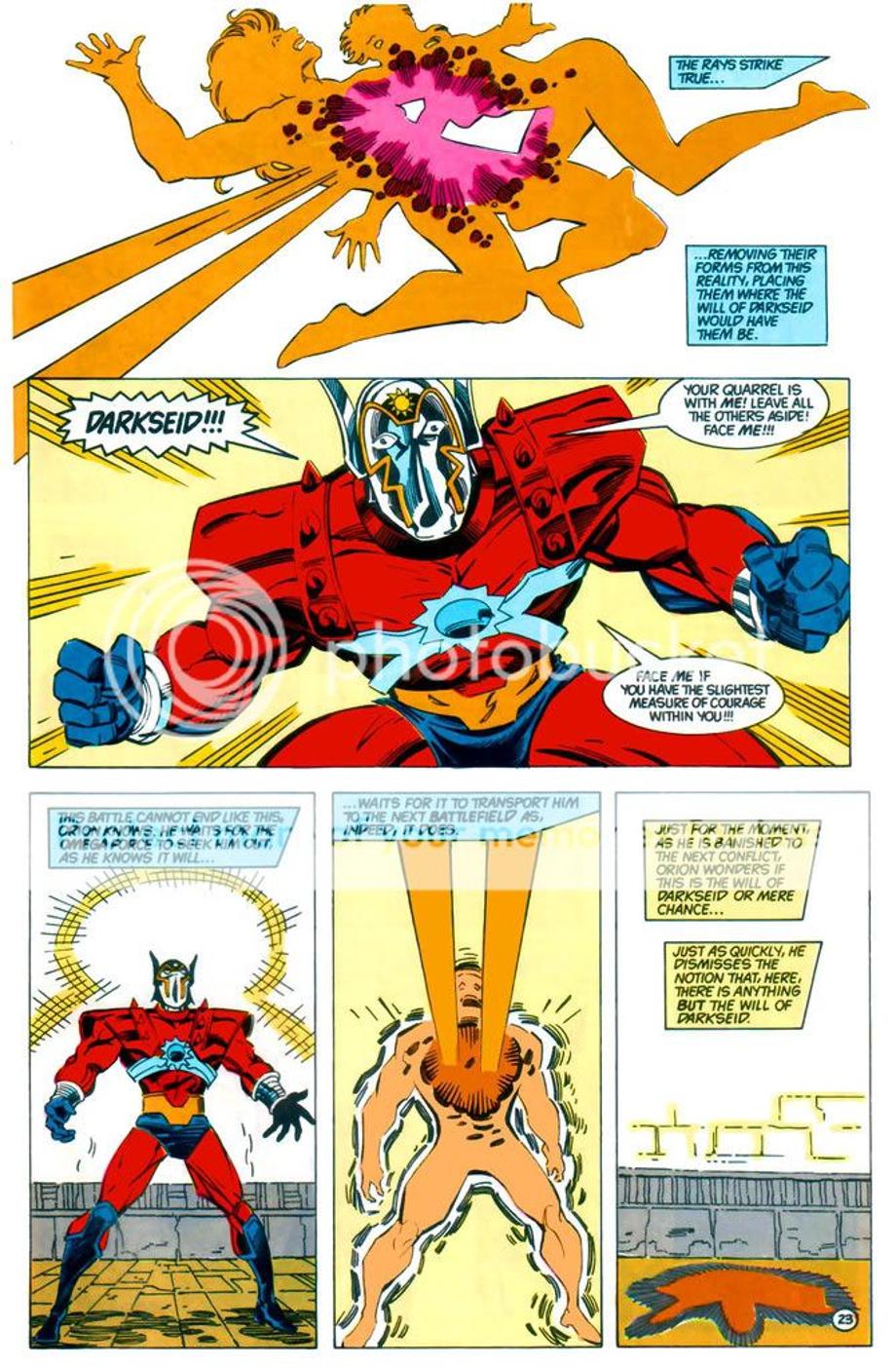 13. Teleports Lightray and Orion away to a place of his choosing. Even Orion knows he can’t fight Darkseid’s will.
