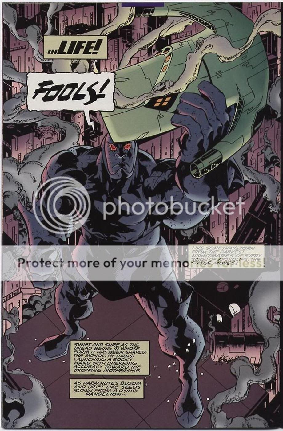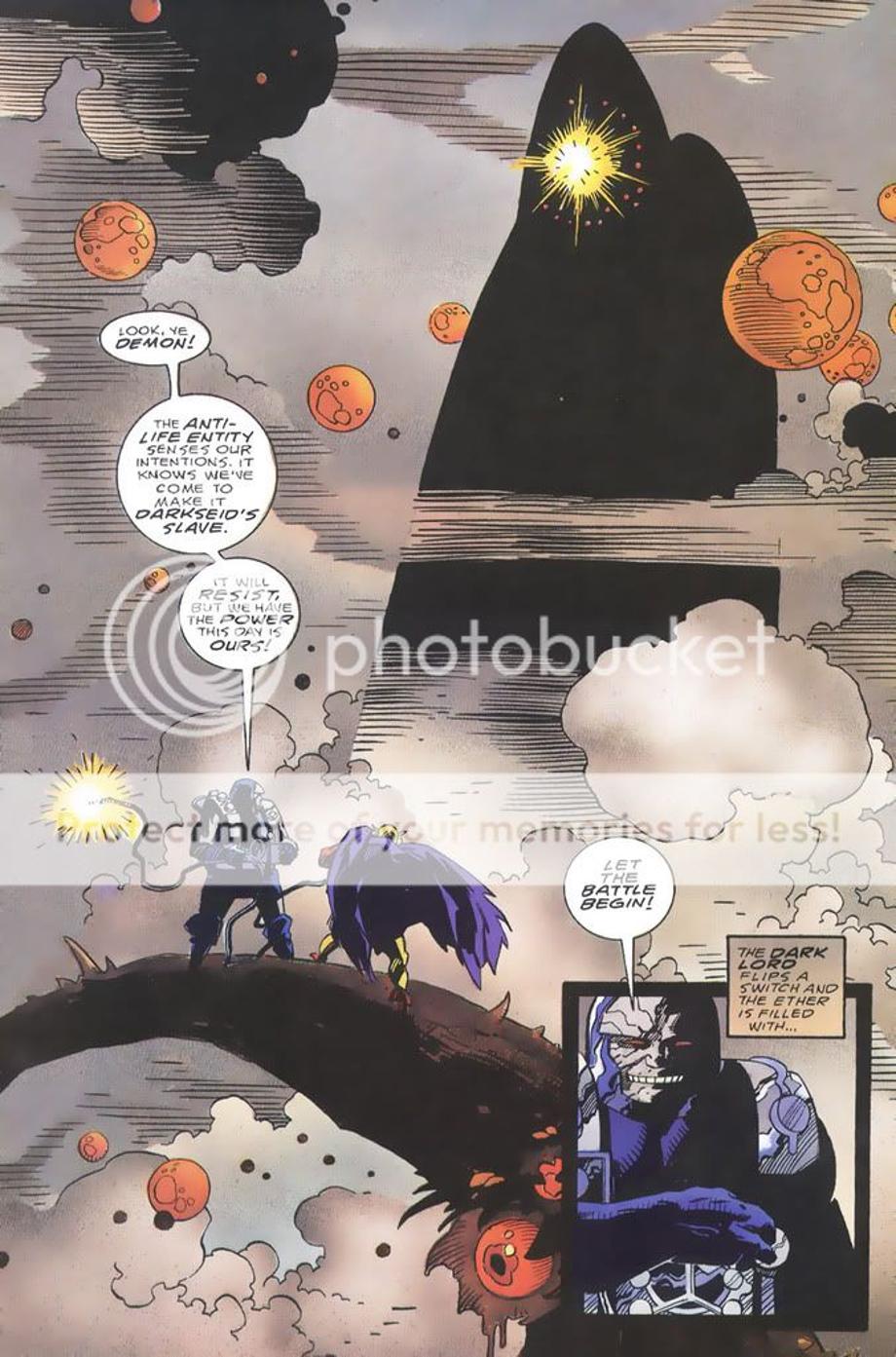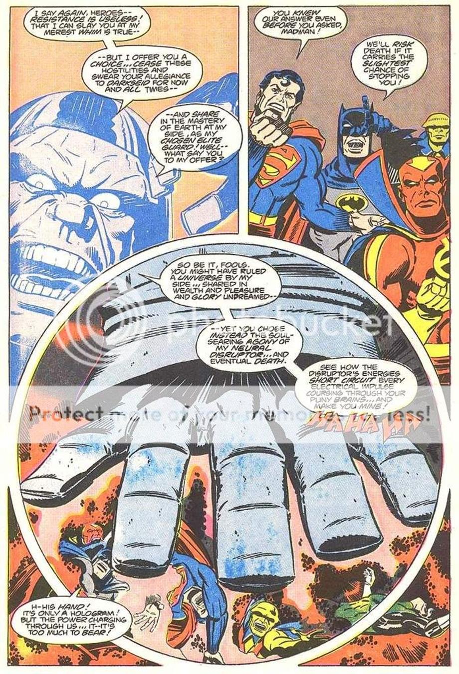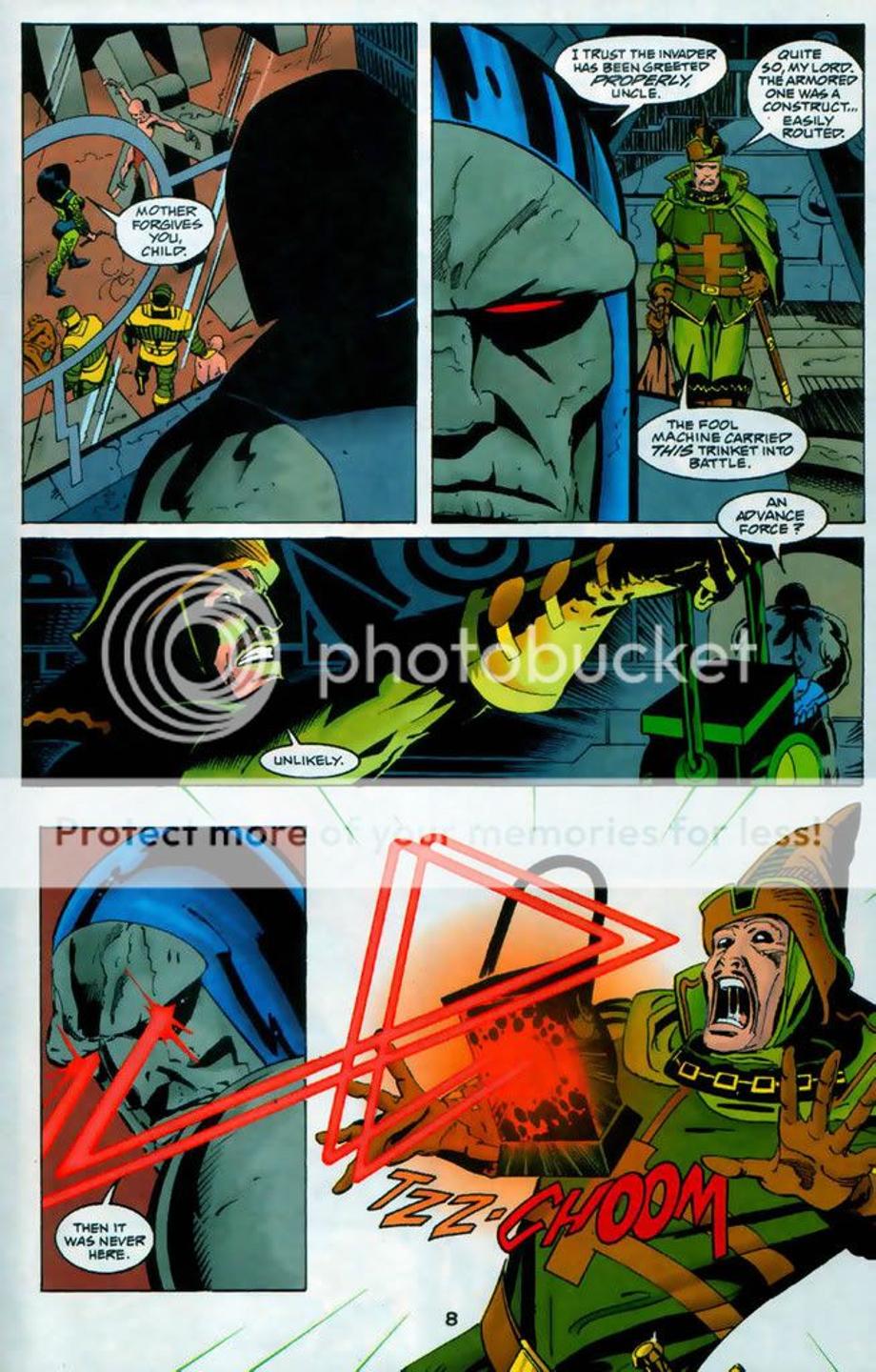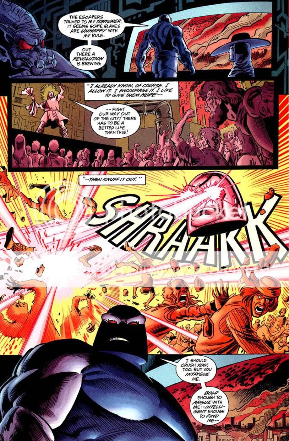 3. The avatar of Darkseid once again uses the floating head of Darkseid to destroy a resistance that was growing.