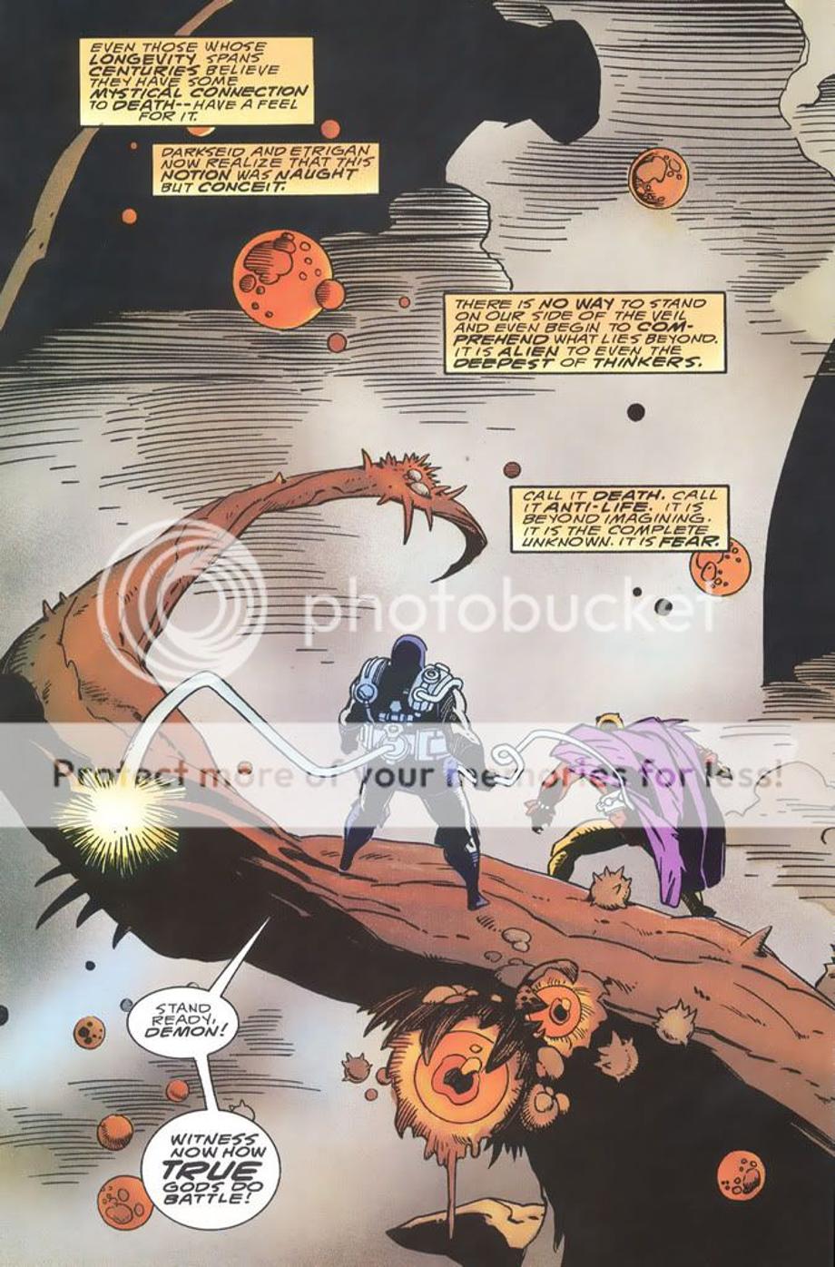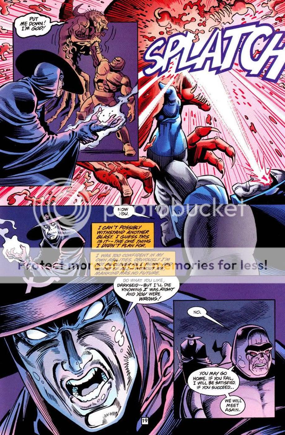 2. An avatar of Darkseid kills a powerful demon named Blasfemy that gave Etrigan a hard time by blowing off his head.