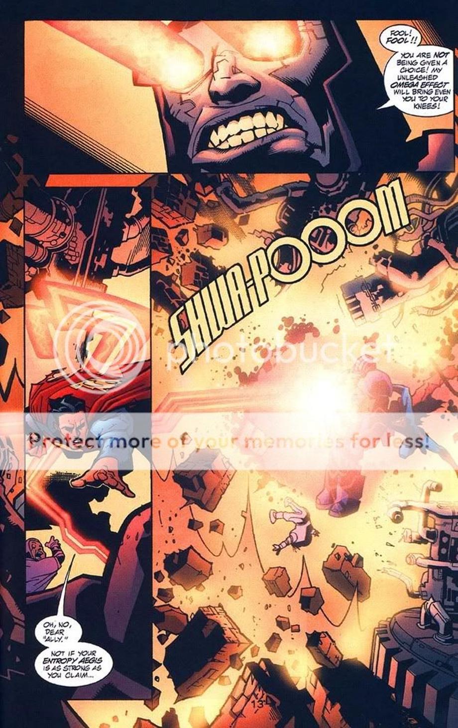 5. hits Superman with some eye beams and it does some serious damage, of course this wasn’t the full Omega Force he was using.