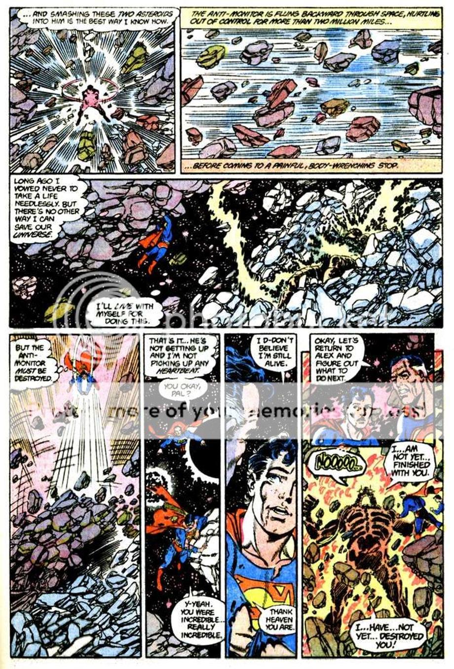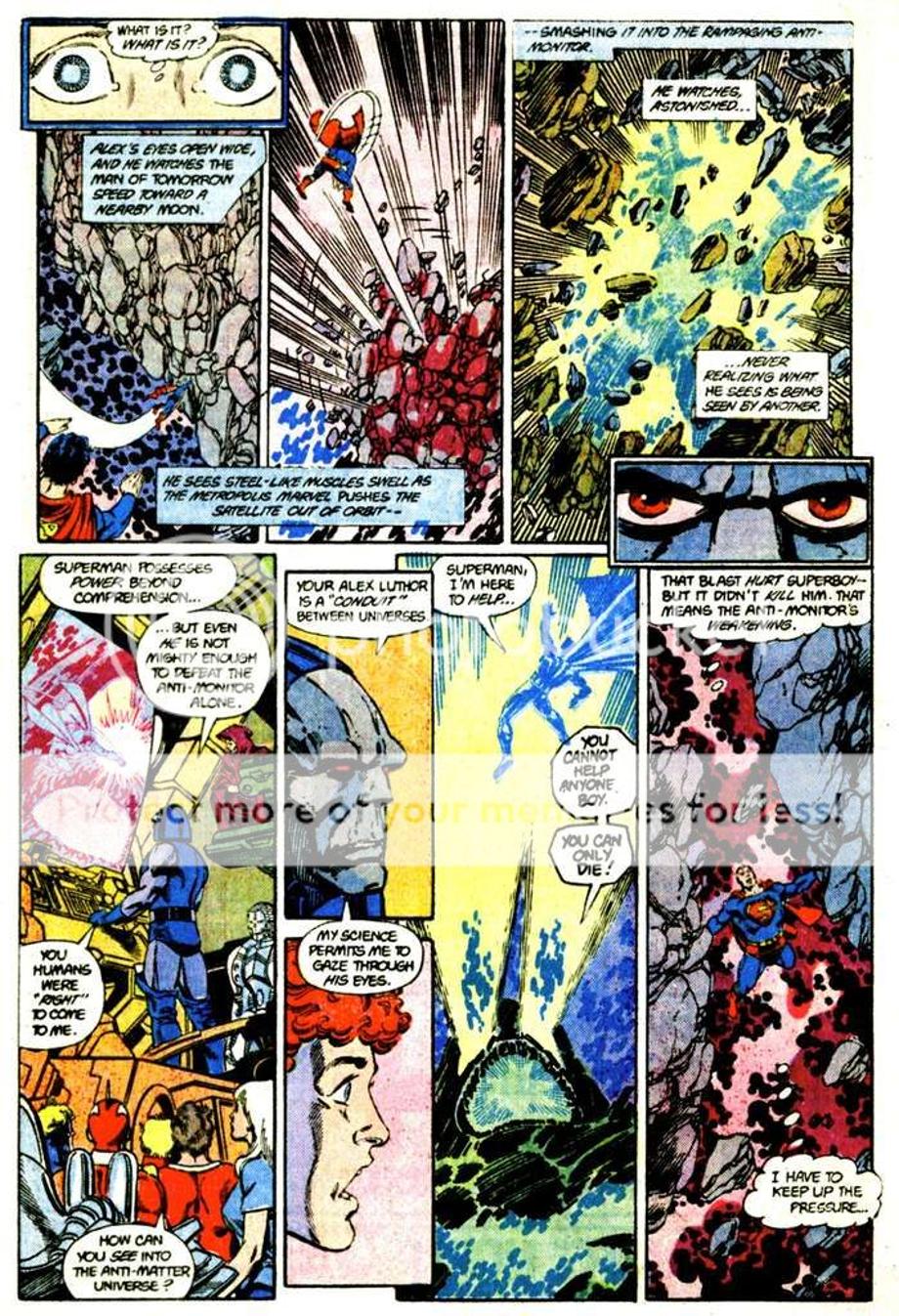 4. Can use people to channel his Omega Beams, here he sends it through Alexander Luthor, which does incredible amount of damage to the Anti-Monitor.