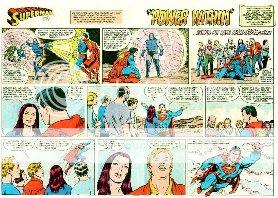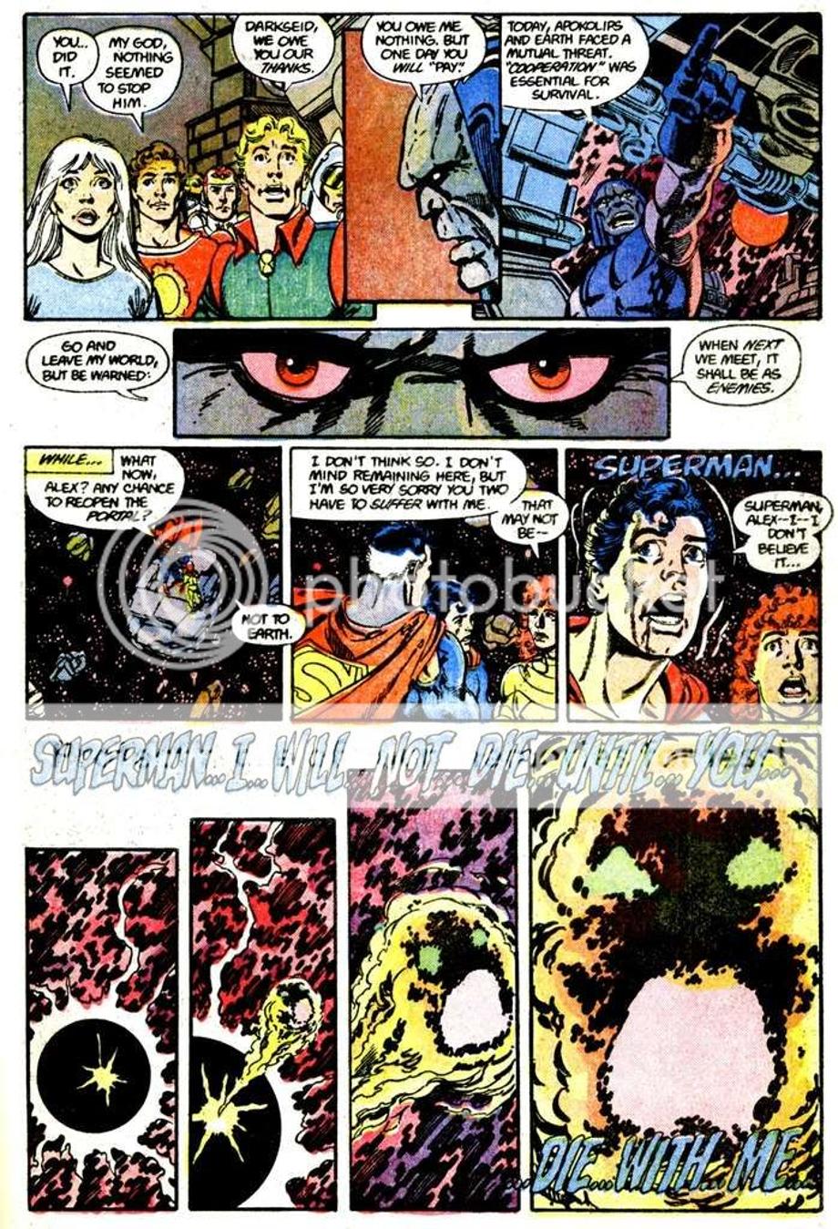 8. Darkseid comes to Earth to kill Superman and he nearly does it, but the Big S gets help from his cousin and Supergirl and Wonder Woman. A sun-amped Superman who throws him into the Source Wall eventually beats Darkseid. (Although Darkseid eventually gets defeated, it took the combined efforts of Superman, Supergirl, and Wonder Woman to put him down).