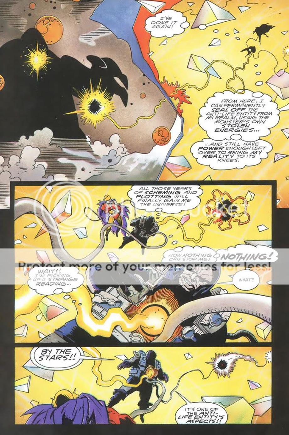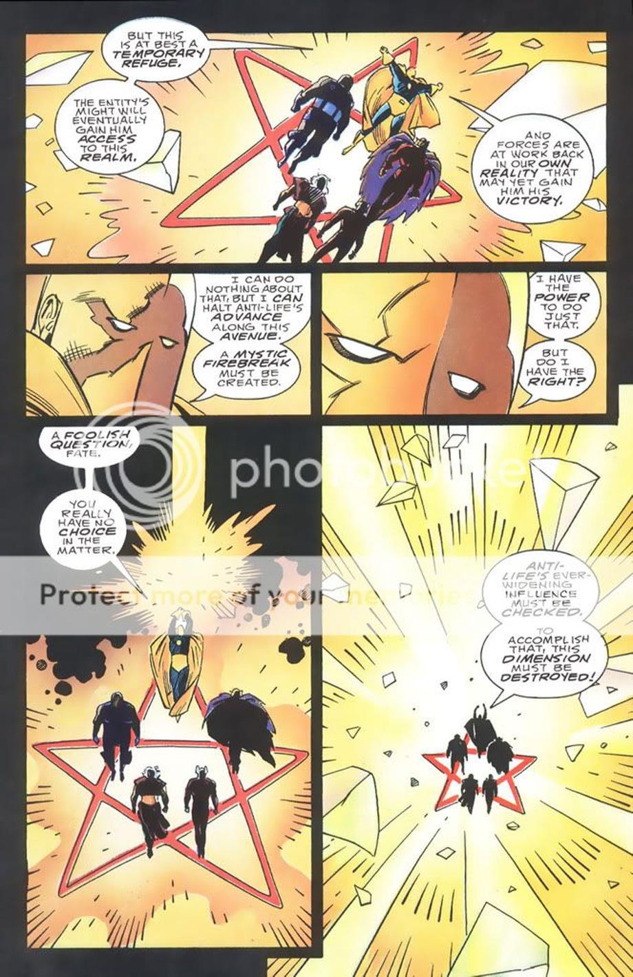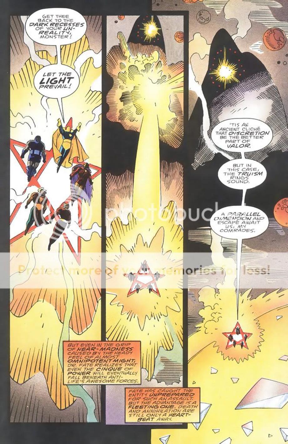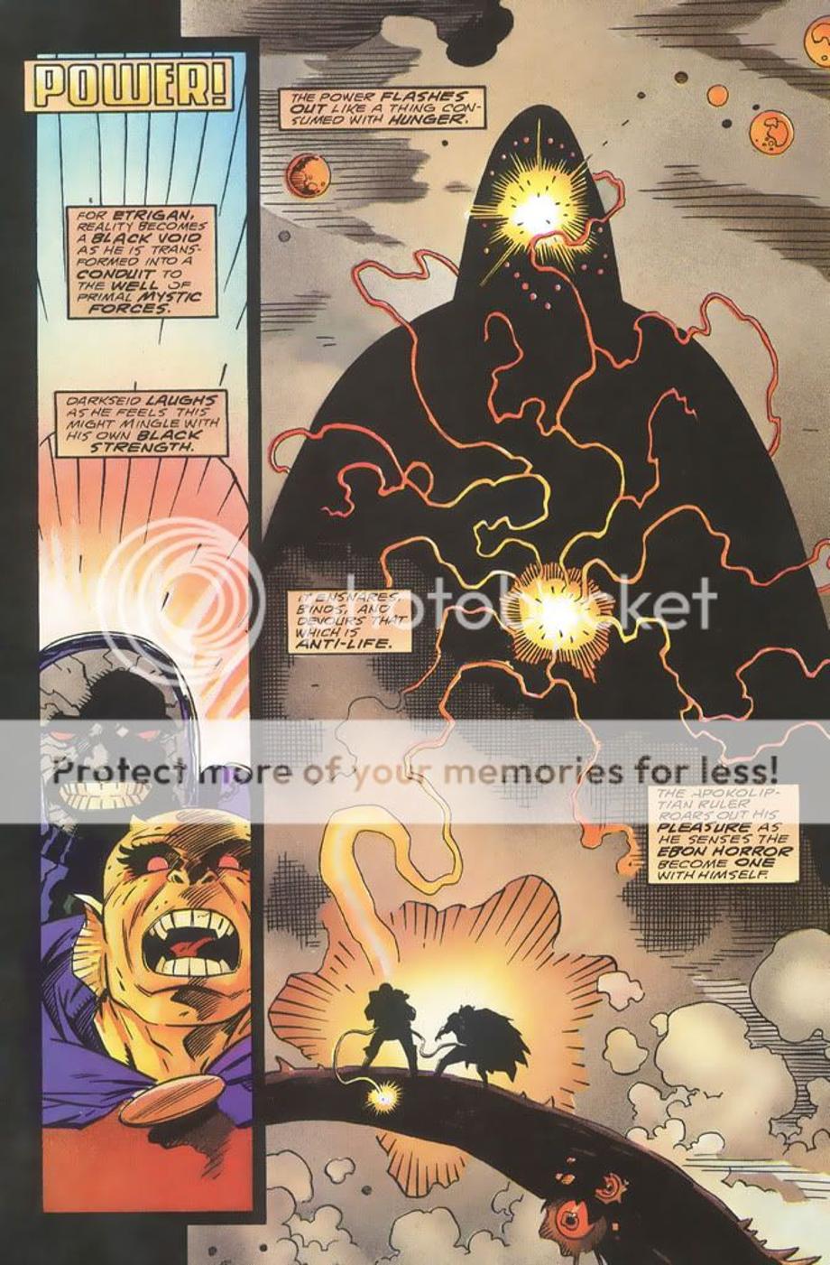1. Sets a plan in motion to make the Anti-Life Entity [the evil part of the Source] his slave. He uses Etrigan as part of his plan and actually steals a portion of the evil part of the Source’s power.