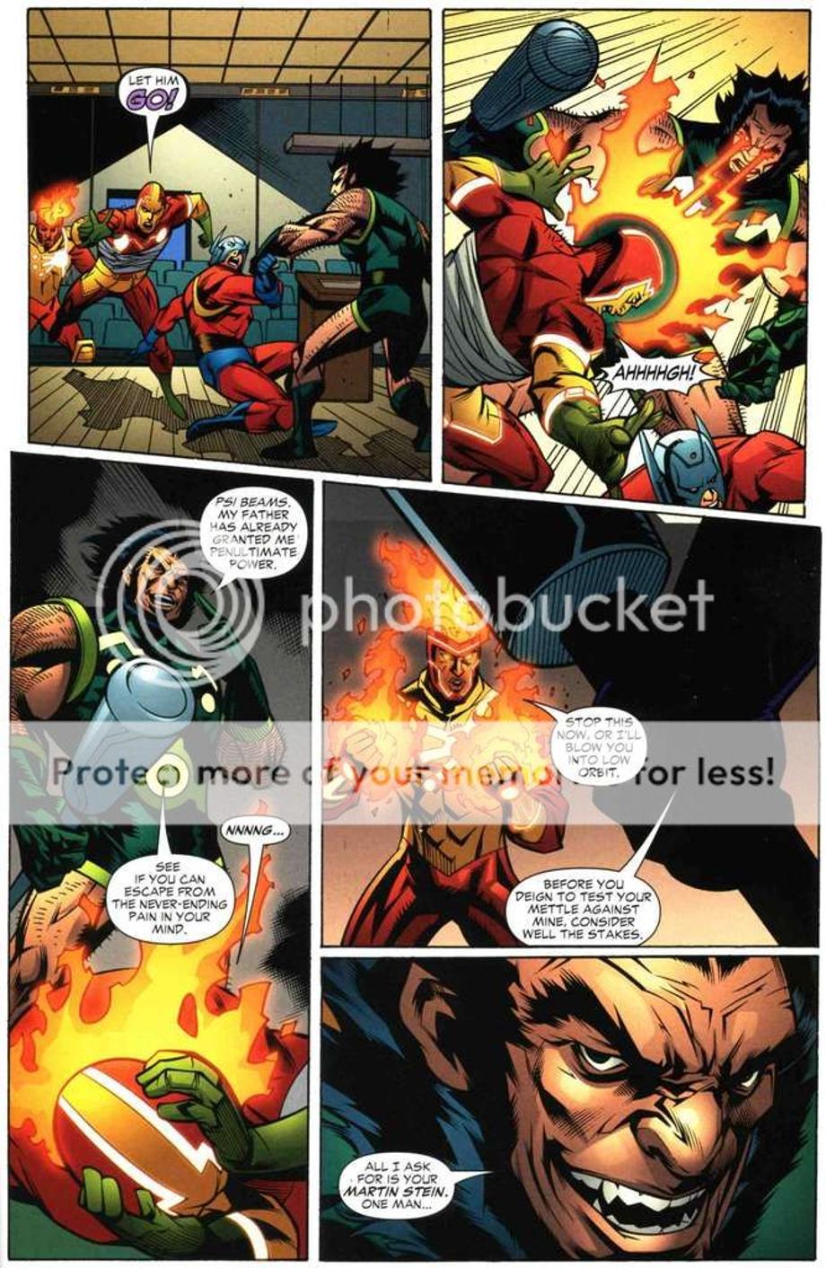 7. Easily defeats the entire JLA, which includes Superman, Flash, Wonder Woman, Red Tornado, Martian Manhunter, Batman, Green Lantern [Hal], Aquaman, Robin, Green Arrow, Hawkman and Dr.Fate merely with two moves. He defeated majority by channeling a neural attack through a hologram, and then used his beams to KO Flash.