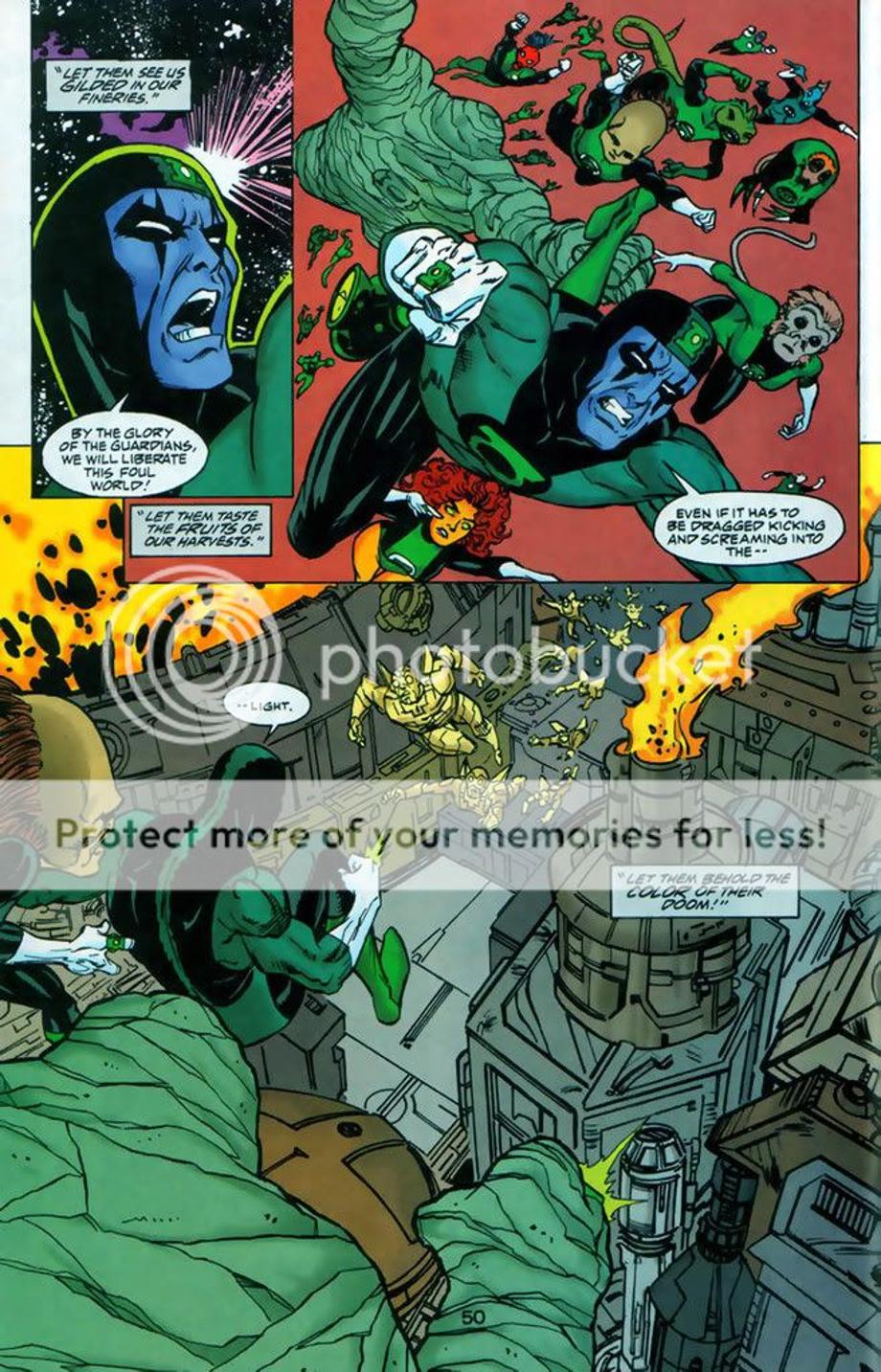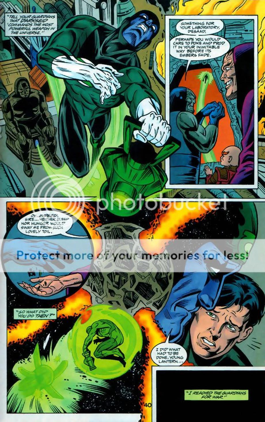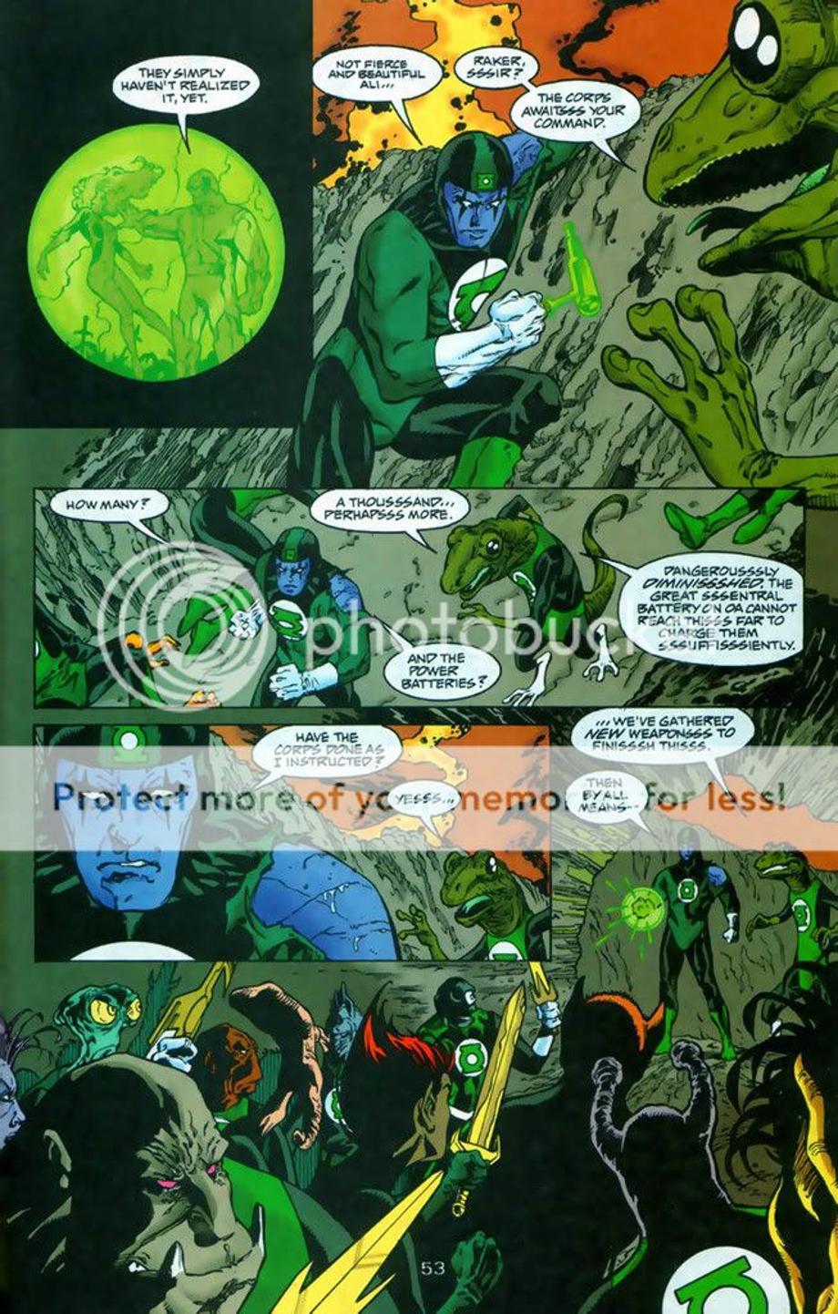 4. 3600 Green Lanterns try to attack Apokolips and dethrone Darkseid from his tyrannical rule. However, DS was prepared for their attack and quickly defeats and kills majority of the corps. Darkseid even snapped the neck of the female Green Lantern Ali, which equally matched Raker in training. It might appear Raker had the advantage at the end, but he really didn’t as the Guardians decided to offer a truce and offer Raker as a trophy for their victory. Later we find out later Raker ends up [not known to him] working for Darkseid.
