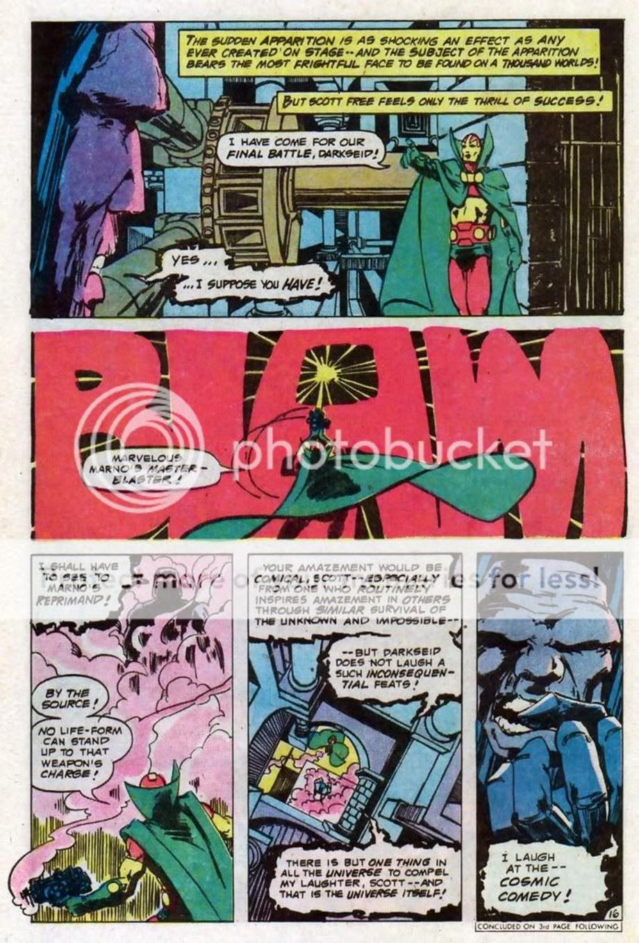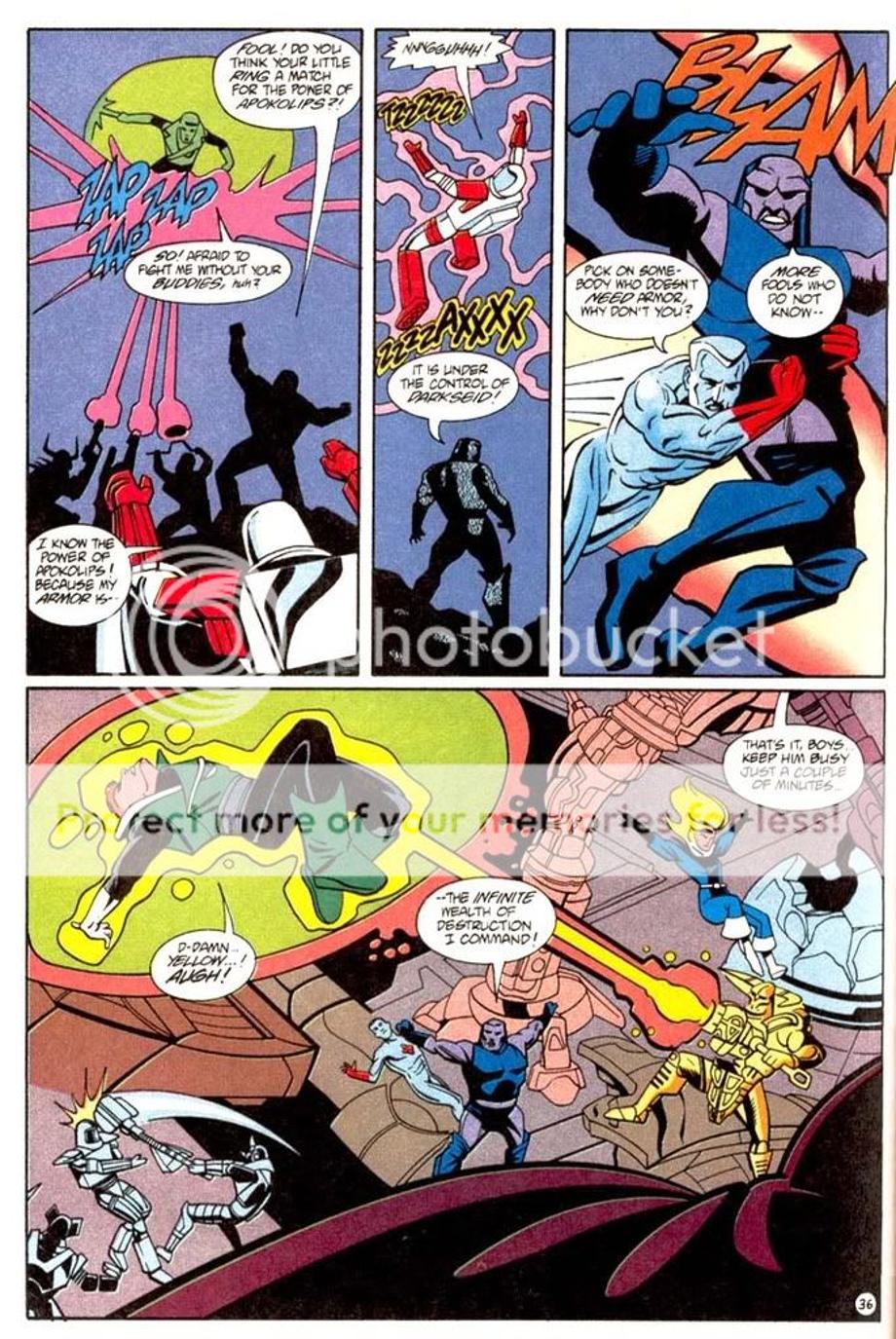 4. Here Darkseid takes a blast a blast from Marvelous Marano’s blaster, which no life-form should stand up to it’s charge. Darkseid does.