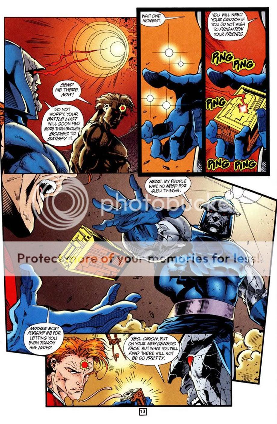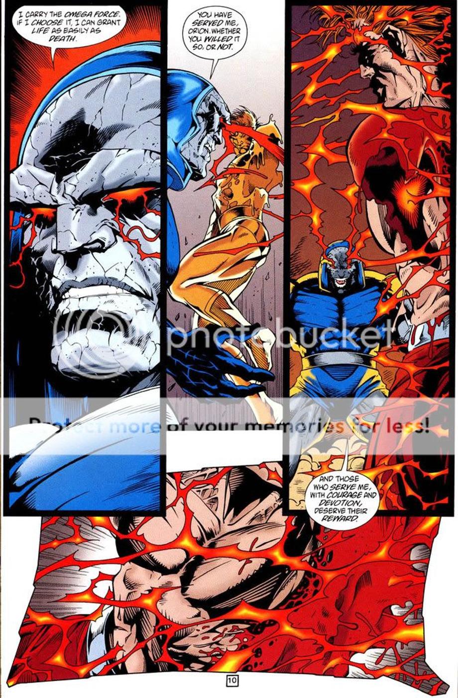 11. Darkseid brings his son, Orion back from the dead healing his wounds.
