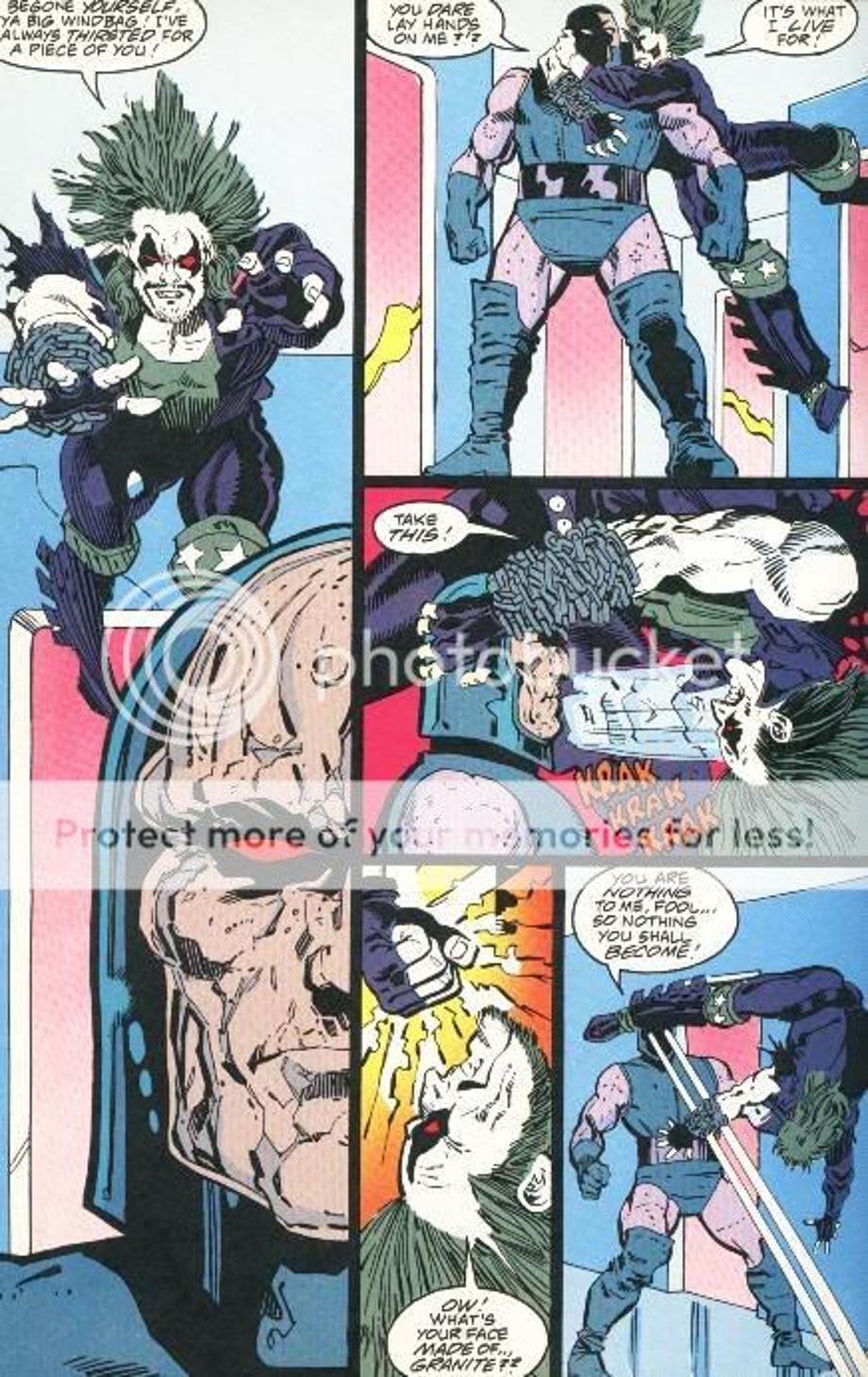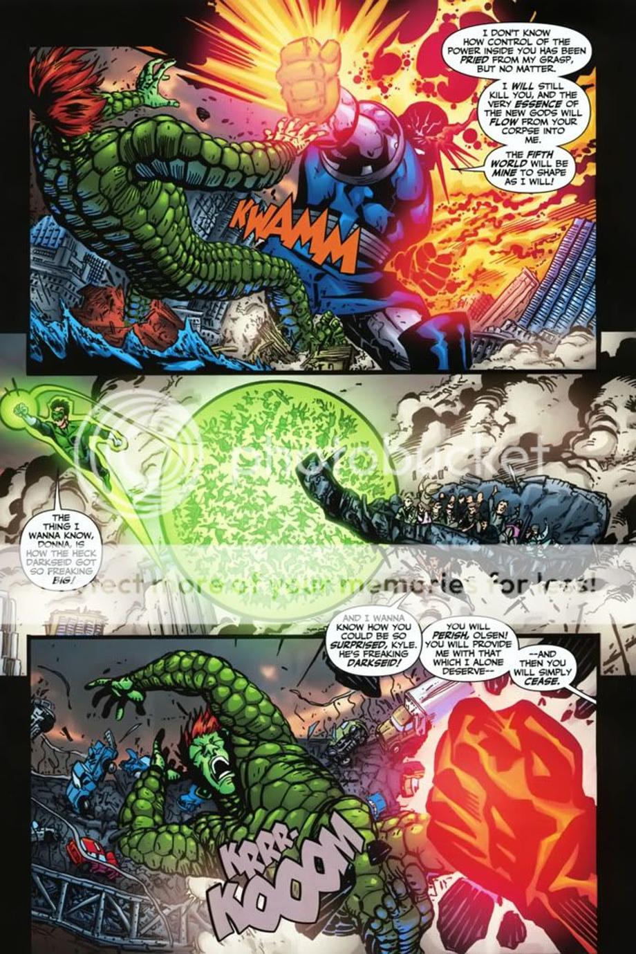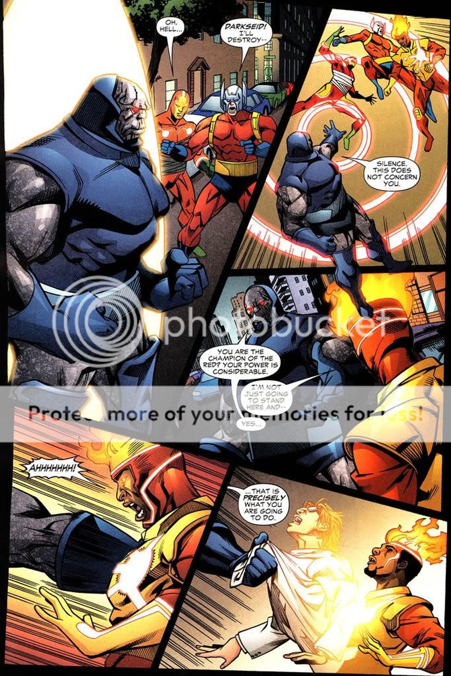 1. Shrugs off an energy blast from Guy Gardner and a tackle from Captain Atom, which Darkseid just swats him away.
