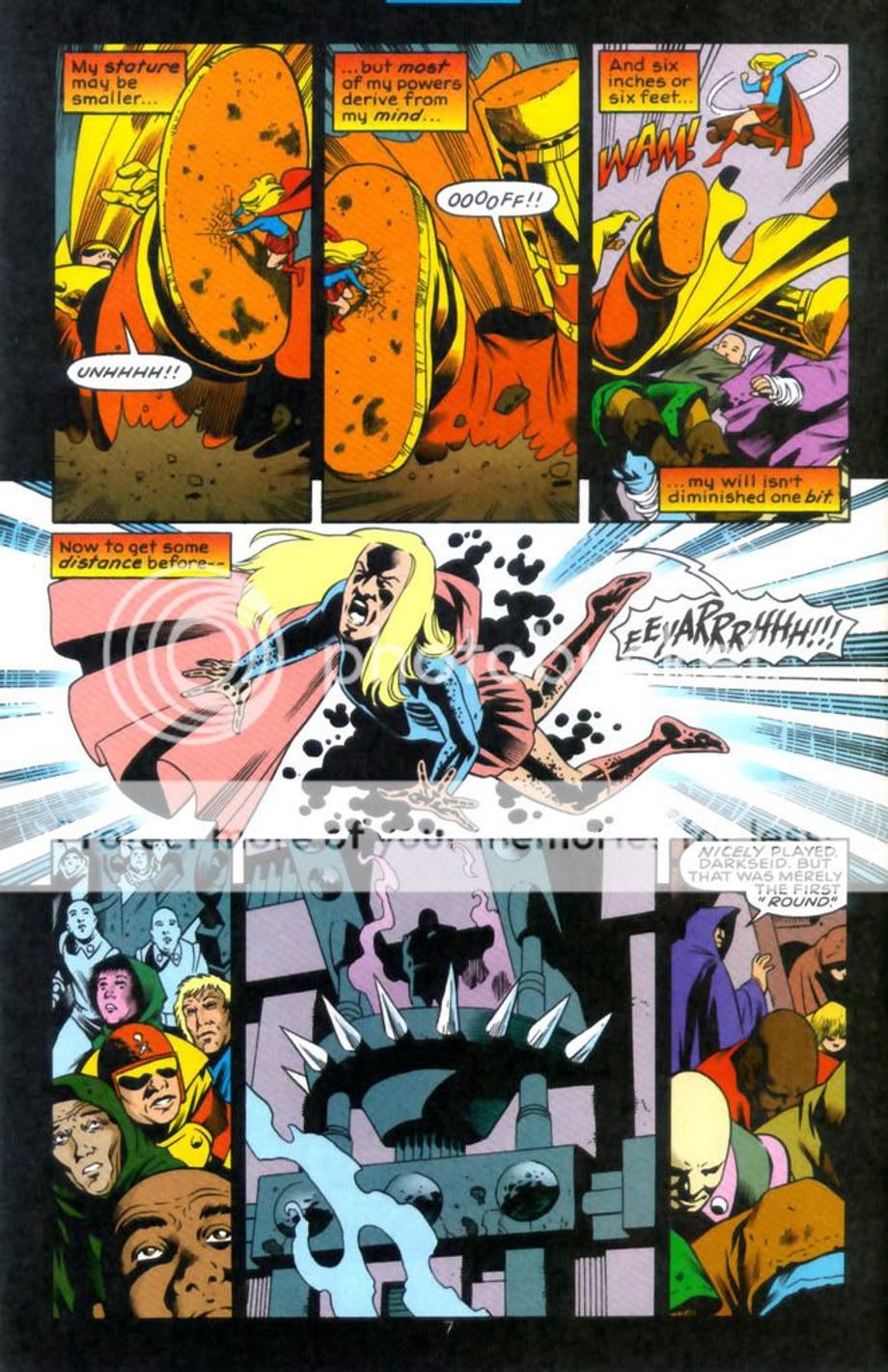 6. Here Darkseid takes a hit from a pissed of Supergirl and it does nothing to him, he even casually strolls away as he doesn’t want to fight. This is even when Darkseid was later to be revealed to be weaker then normal as he lost most of the Omega Force being traped in the Source Wall just an issue earlier.