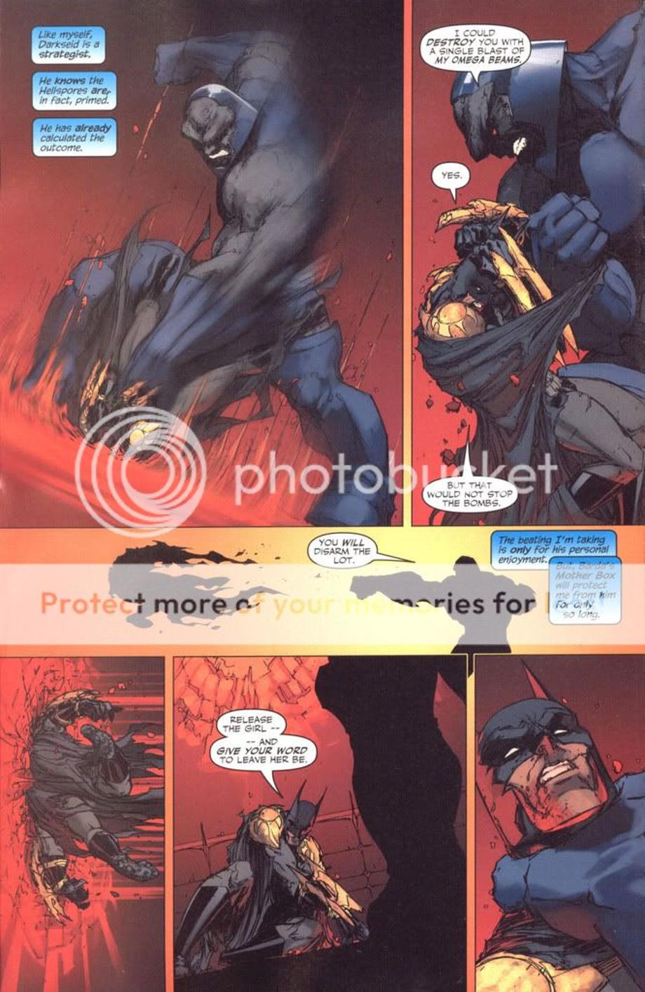 2. Batman (later revealed to be a clone) who was upgraded by a Mother Box challenges Darkseid to a fight. Well, yeah still doesn’t help and "Batman" knows Darkseid was merely toying with him.