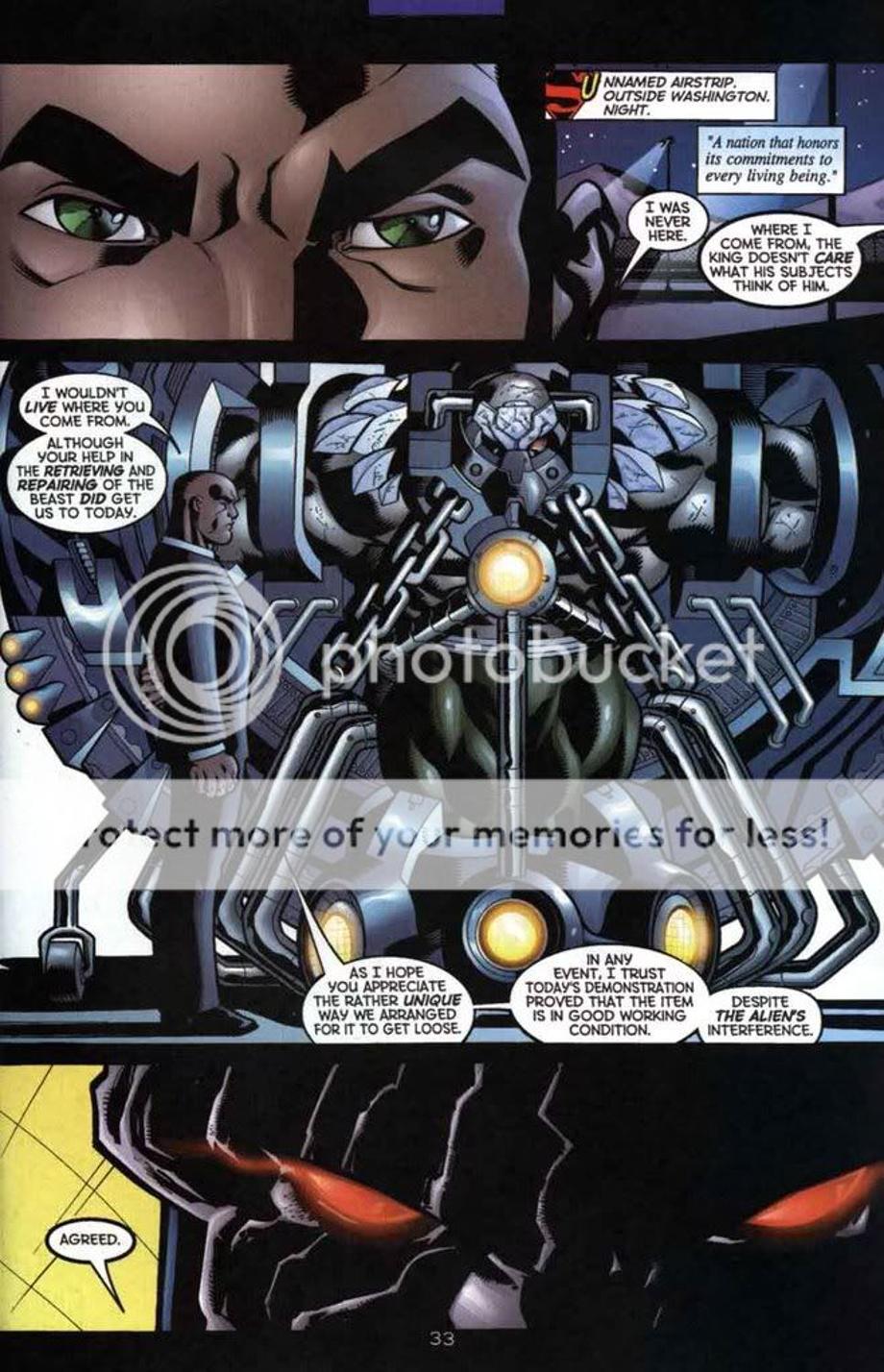 12. Retrieved and repairing Doomsday after Imperix incinerated him, and he also with Luthor released him to battle Superman