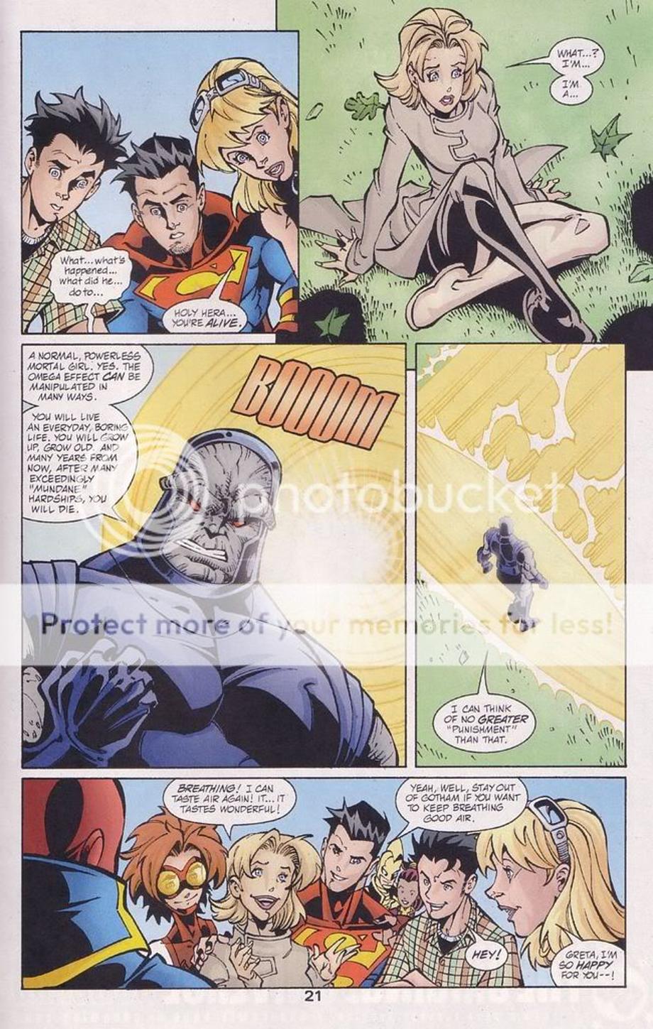 9. Depowers Secret with his Omega Beams returning her back to a normal girl.