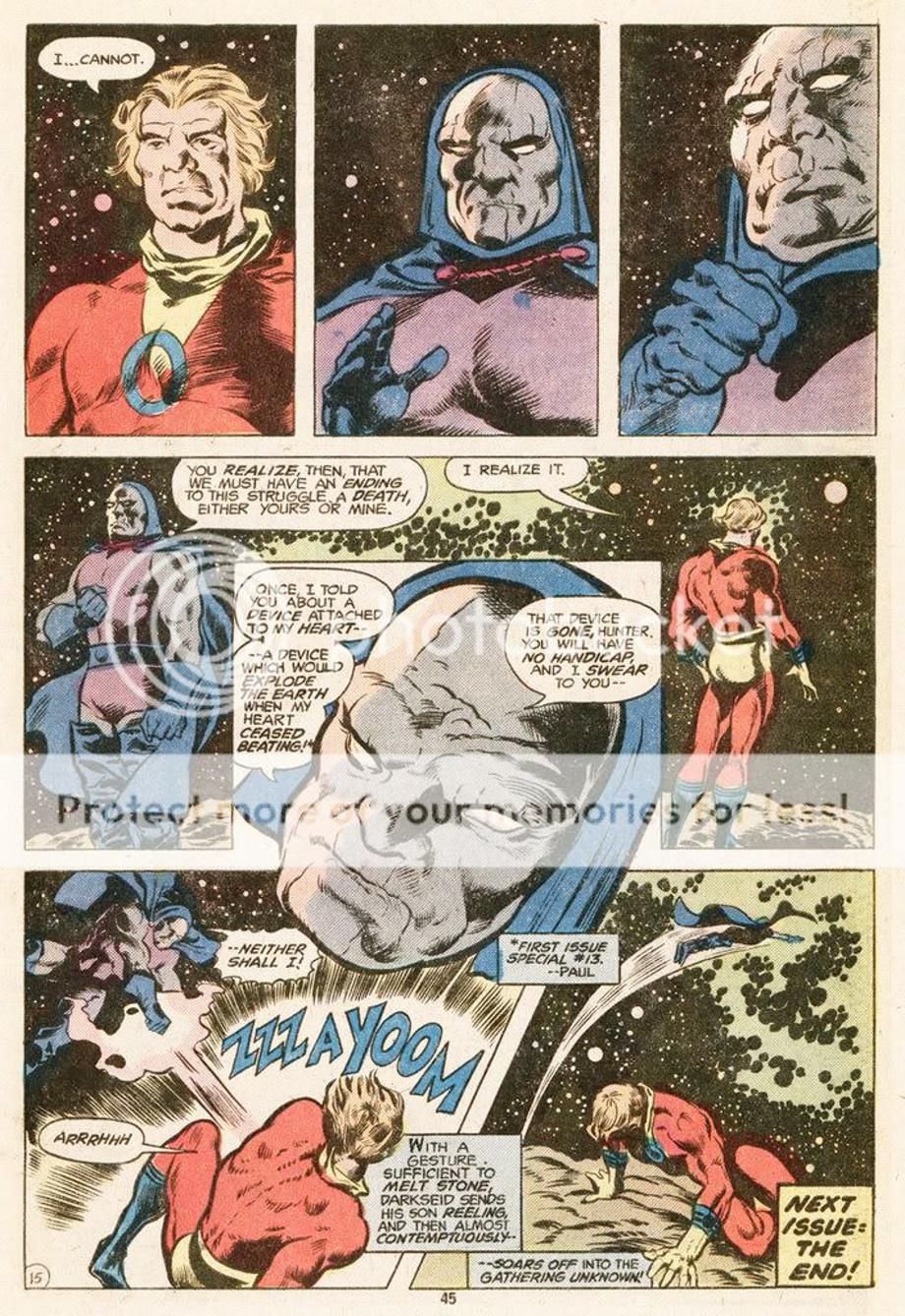 1. Here it’s revealed Darkseid created the very powerful Brimstone that humbled the Justice League, Firestorm, Cosmic Boy, etc.