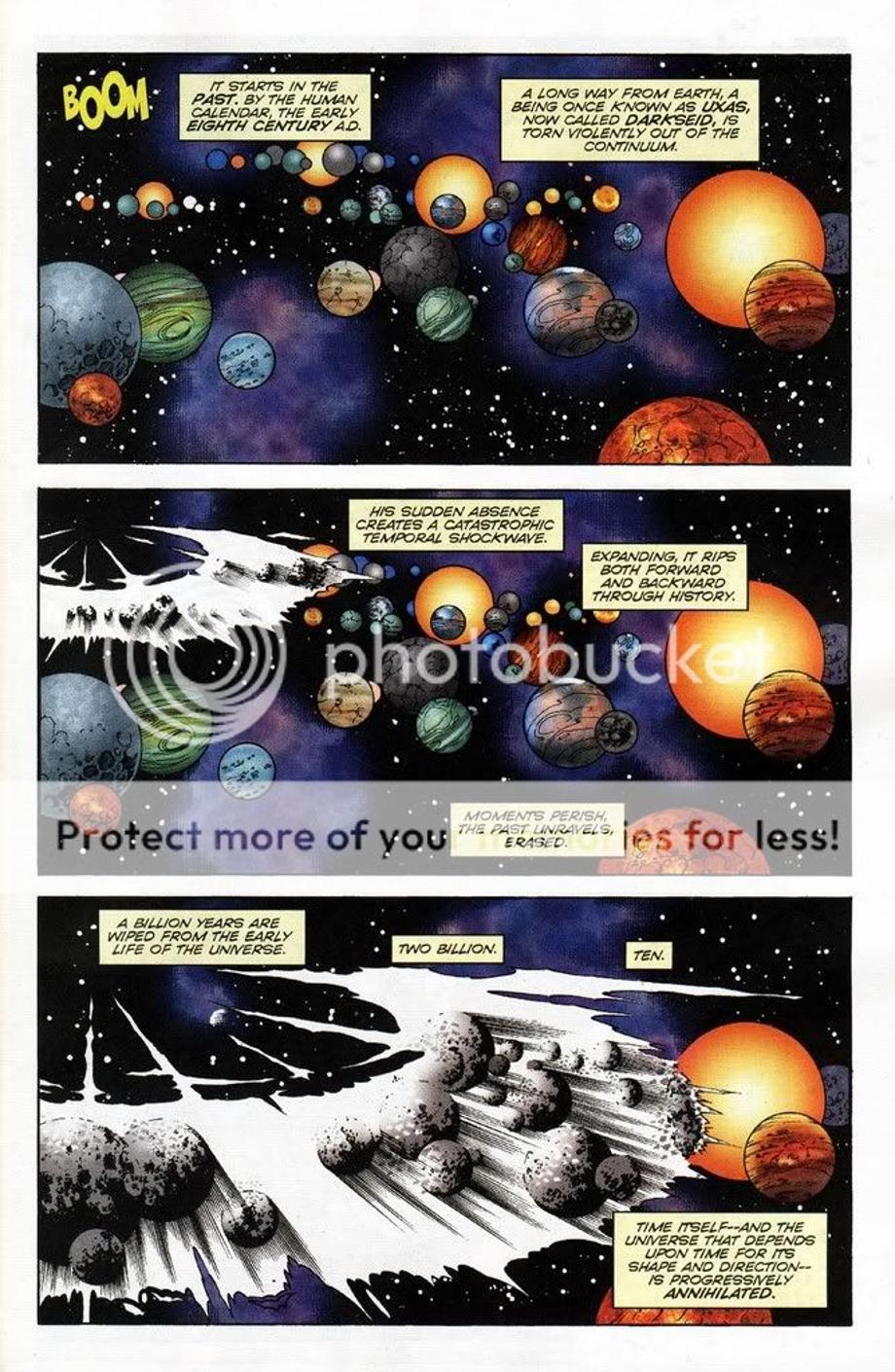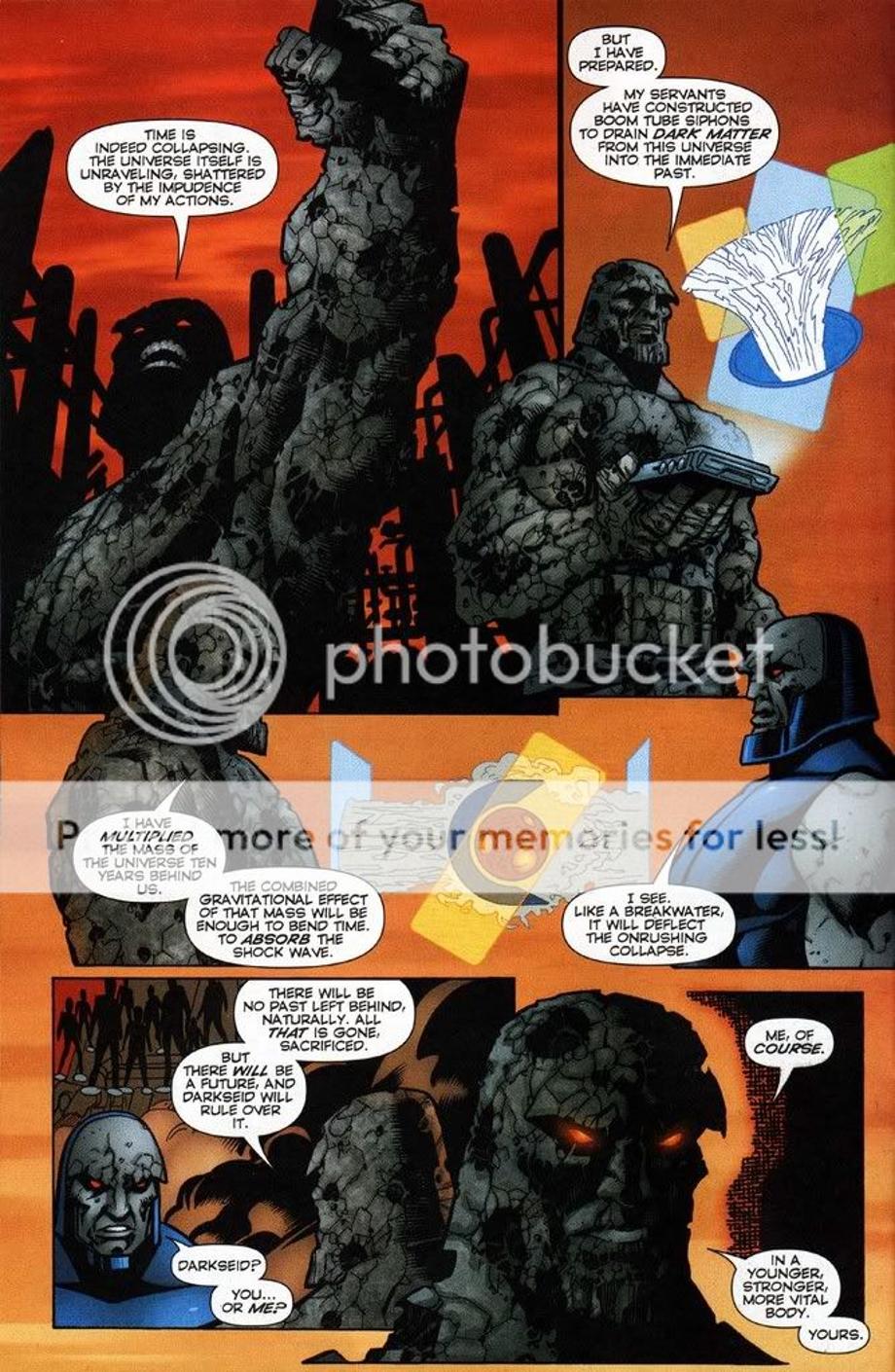 15. An older Darkseid removed a newly born Darkseid from the timeline, which caused the entire universe/timeline to be destroyed by doing so.